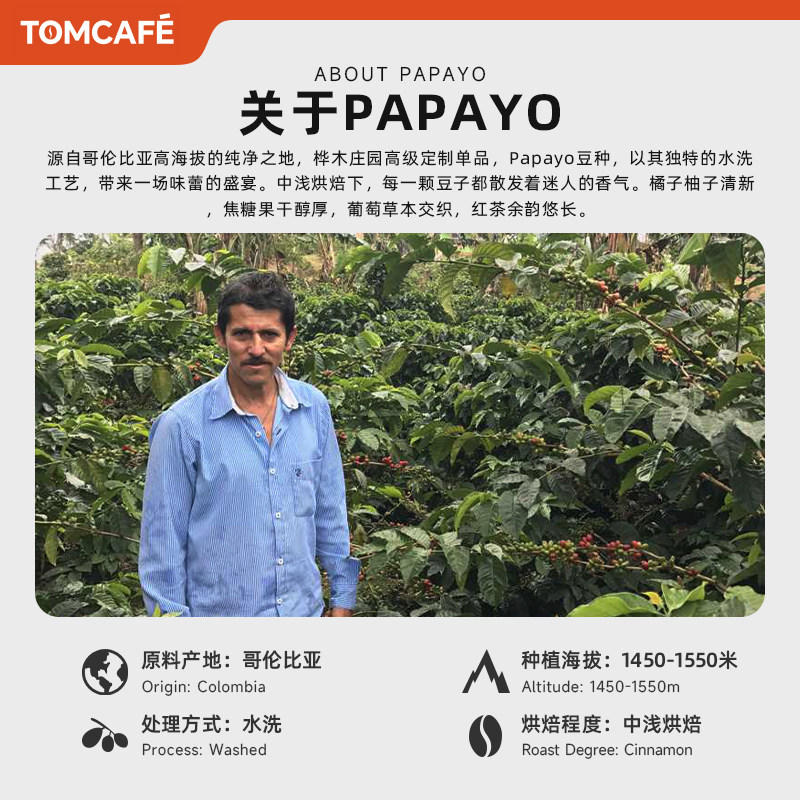 汤咖哥伦比亚papayo豆种精品咖啡