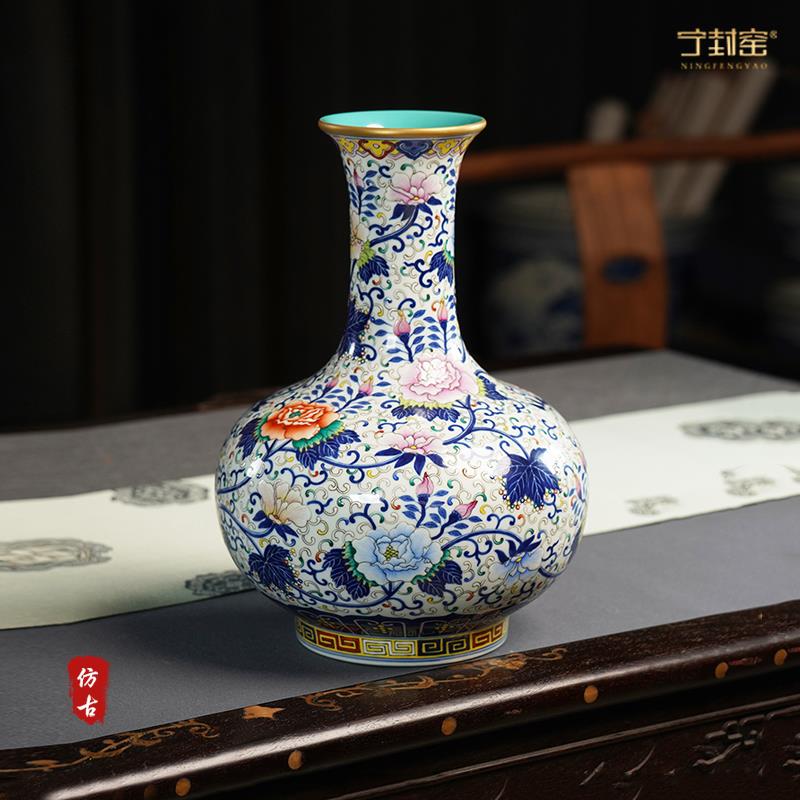 宁封窑手绘彷古景德镇花瓶陶瓷瓶摆件客厅青花瓷新中式博古架瓷器