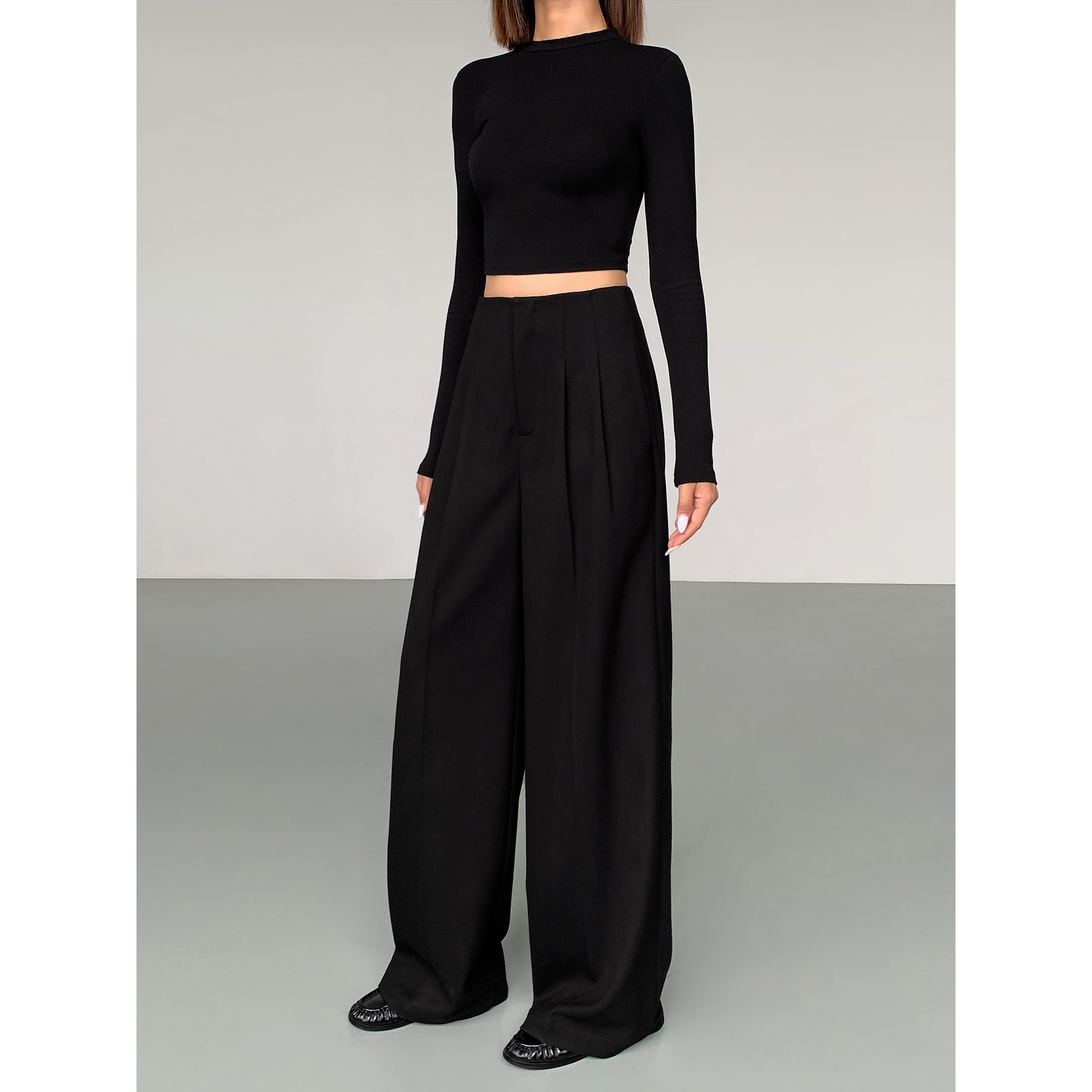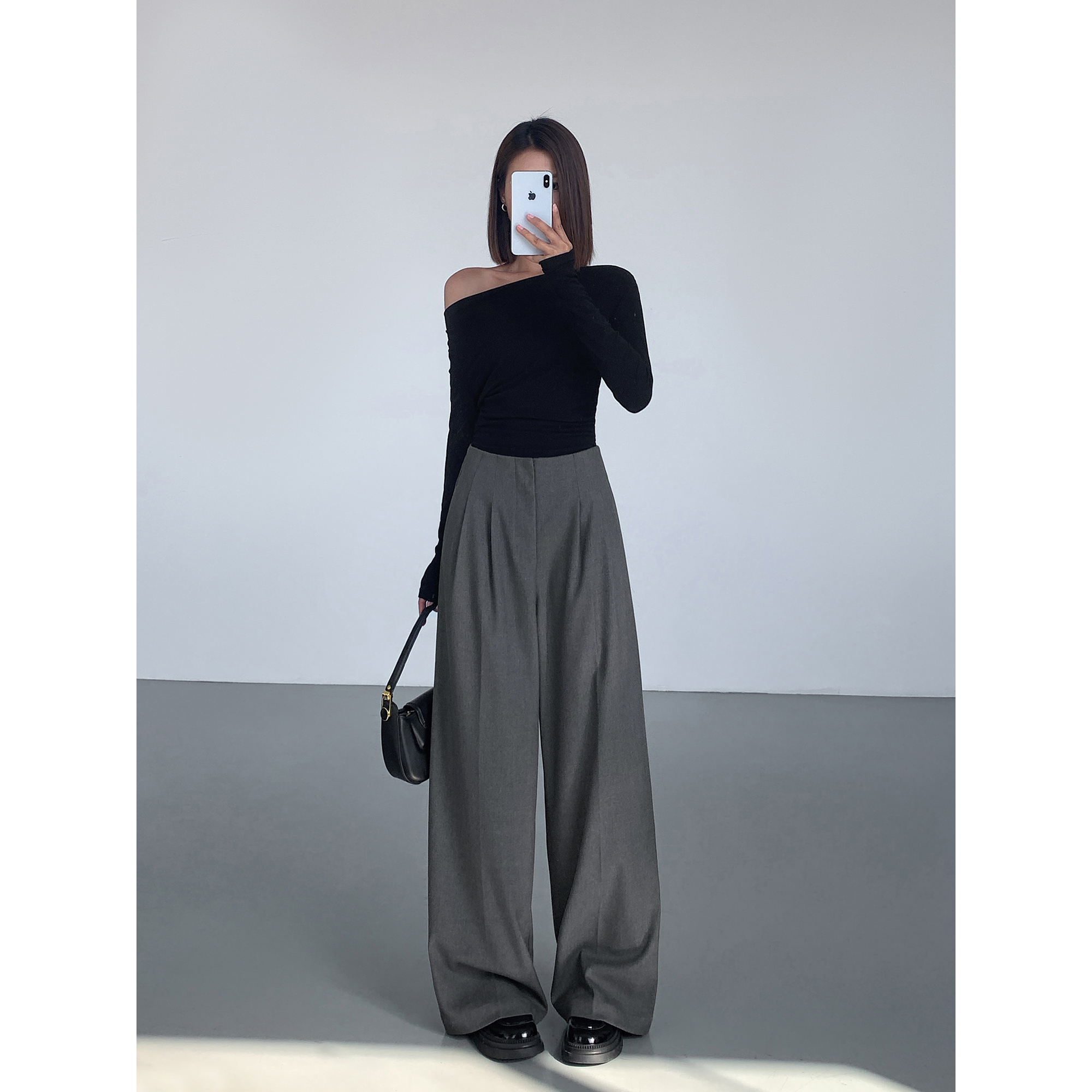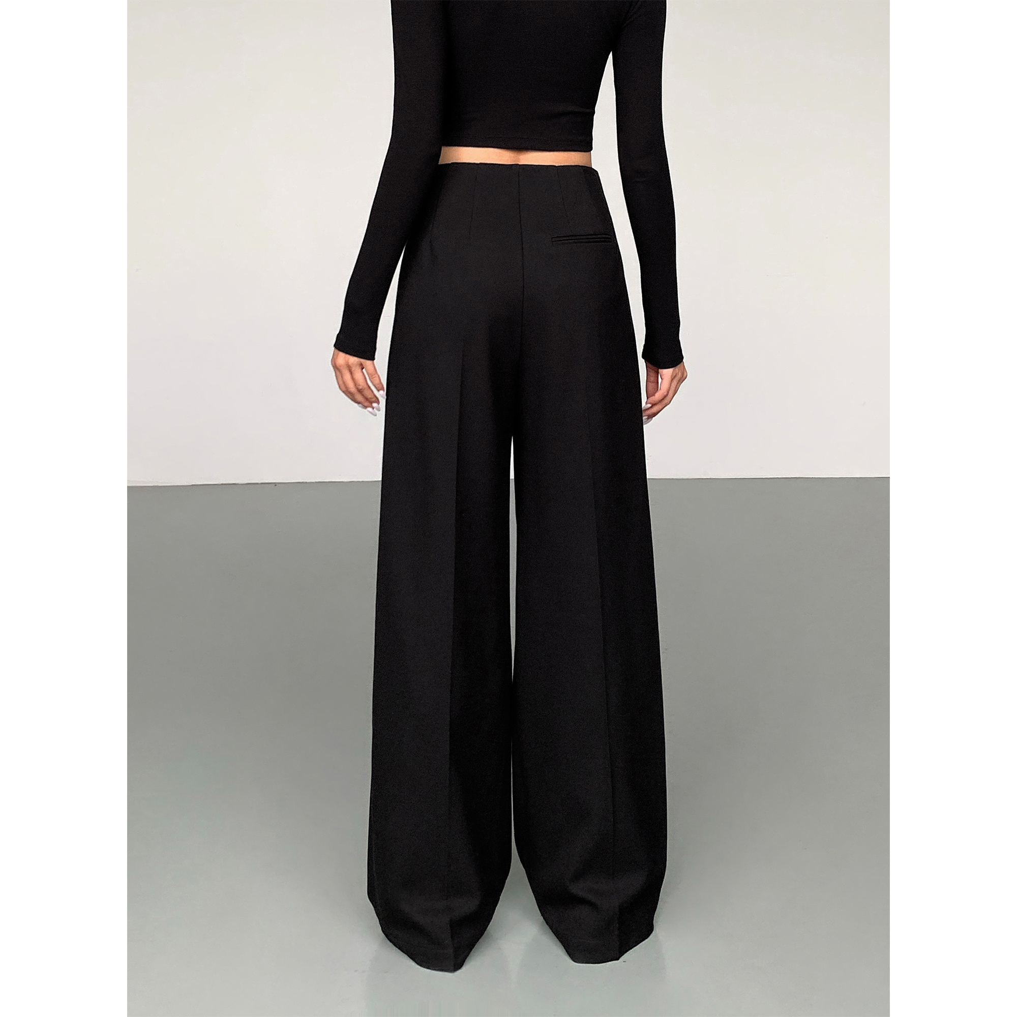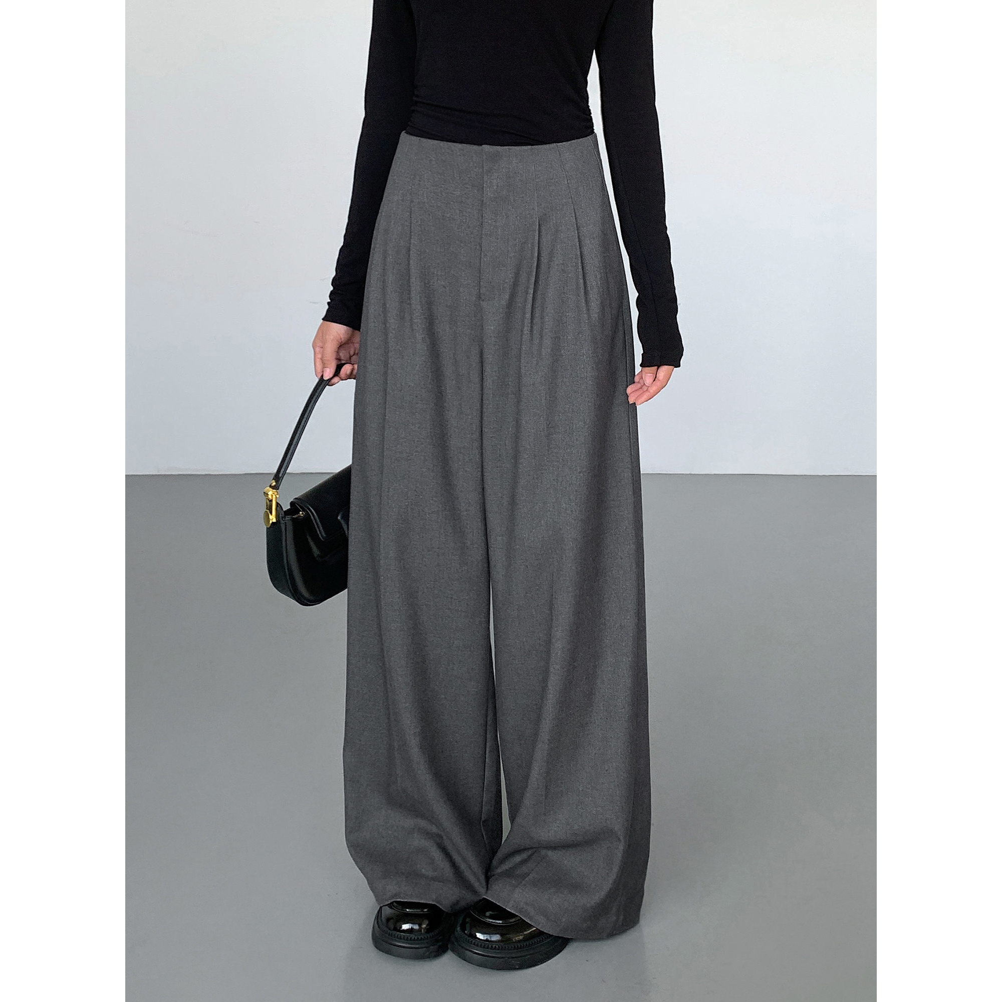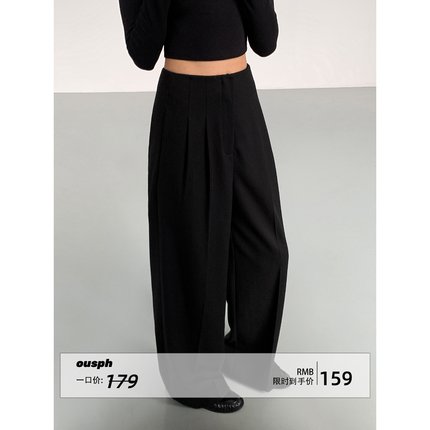 ousph 秋冬黑色阔腿西装裤女新款宽松休闲直筒裤百搭垂感拖地长裤