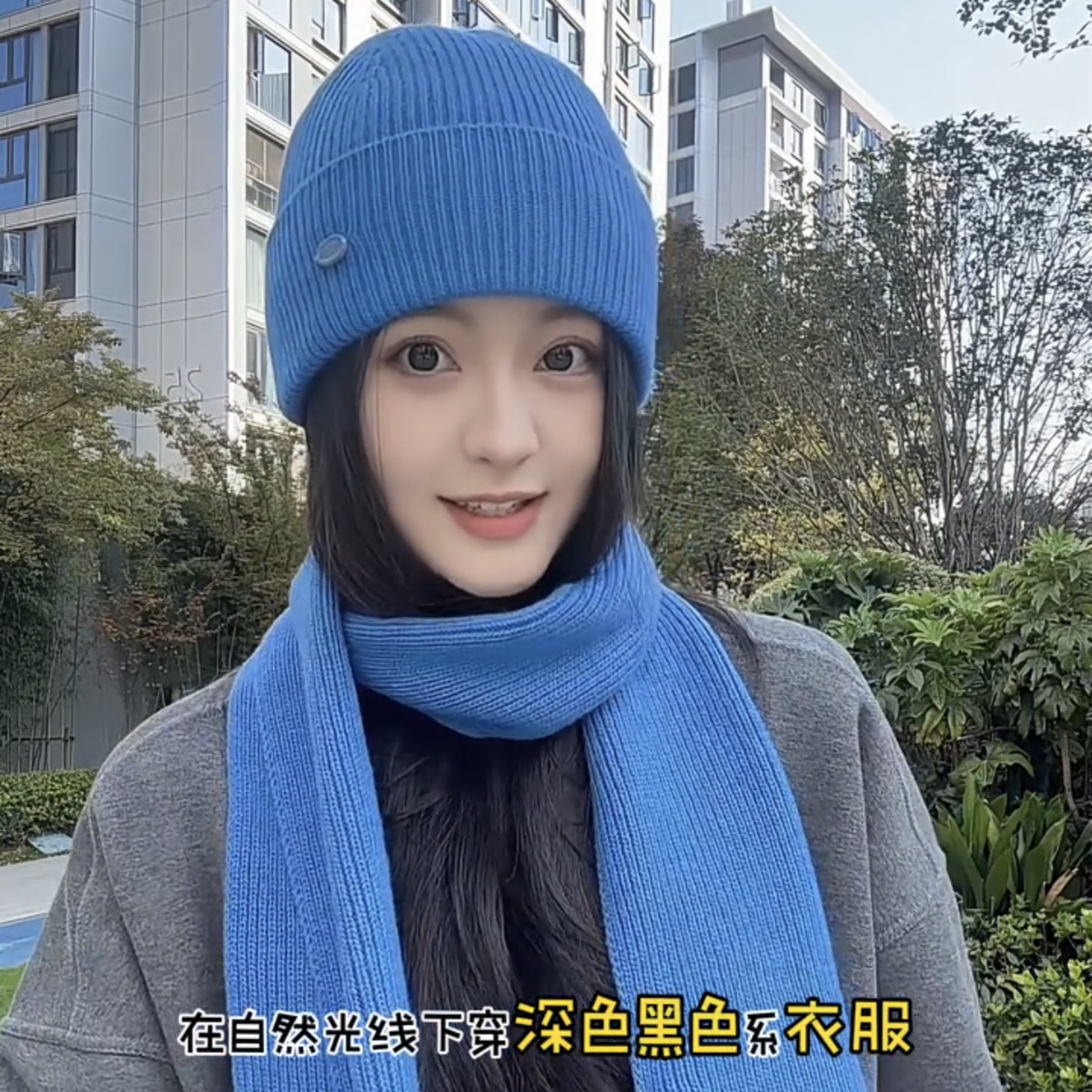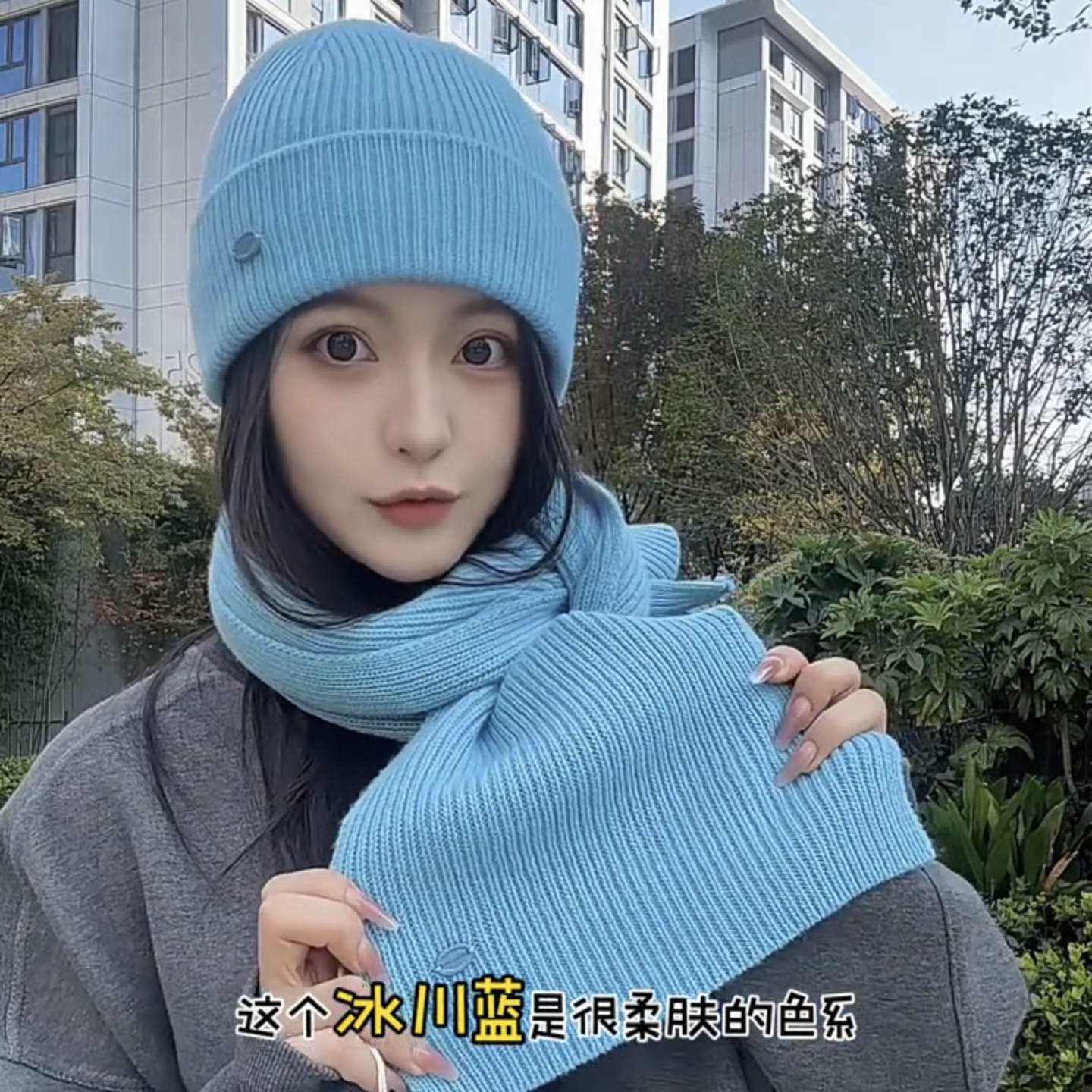 韩版时尚澳洲羊毛围巾帽子女秋冬季气质保暖针织帽套装护耳显脸小