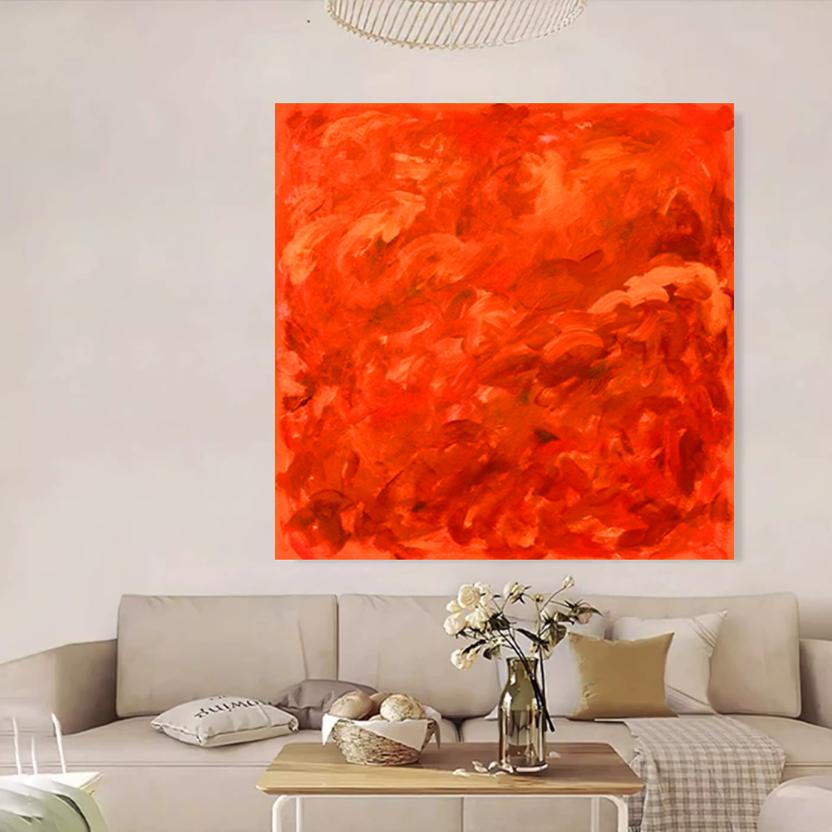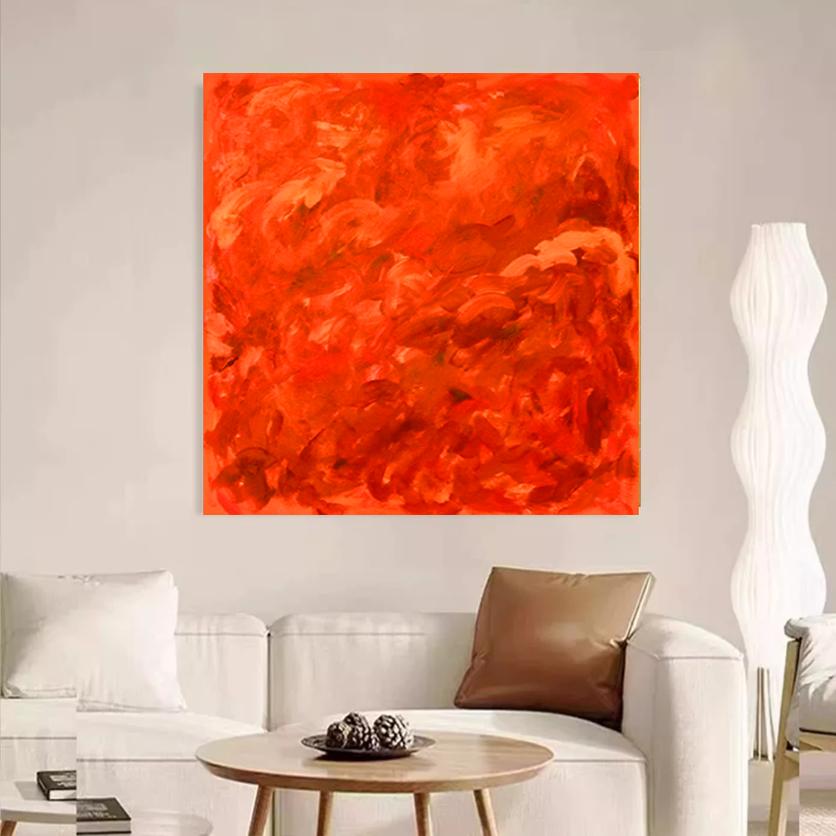 MHD正方形红色抽象客厅装饰画艺术手绘油画沙发画玄关卧室床头画