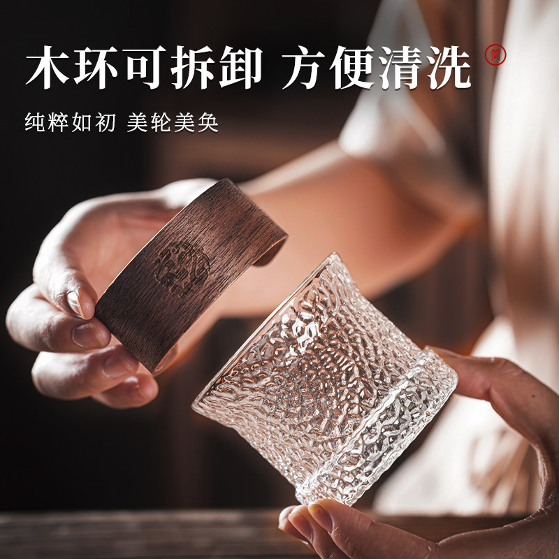 防烫耐热玻璃品茗杯子小茶杯水杯功夫茶具喝茶锤纹主人杯茶碗家用
