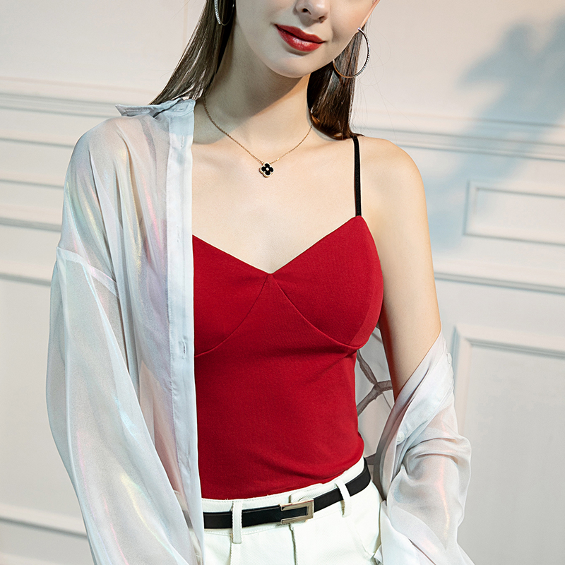 2025秋季新款棉t吊带女修身内搭洋气性感带胸垫背心打底性感夏装