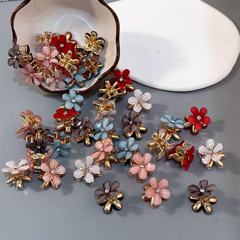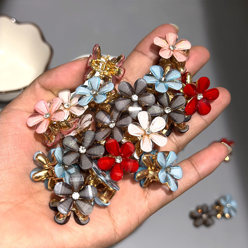 精致迷你小号抓夹水晶花朵发夹少女高级感侧边夹子头饰碎发刘海夹