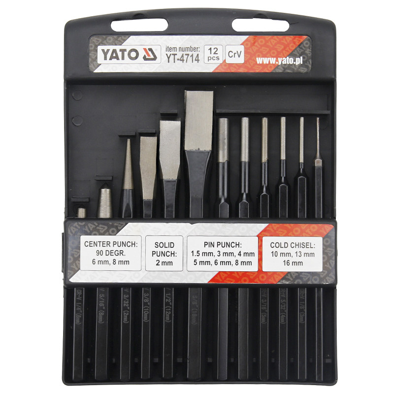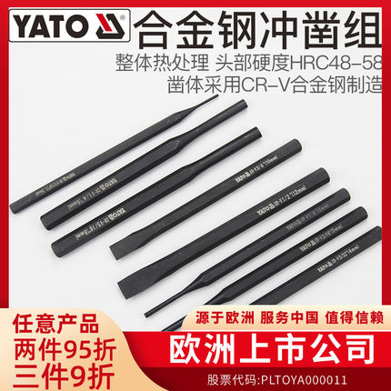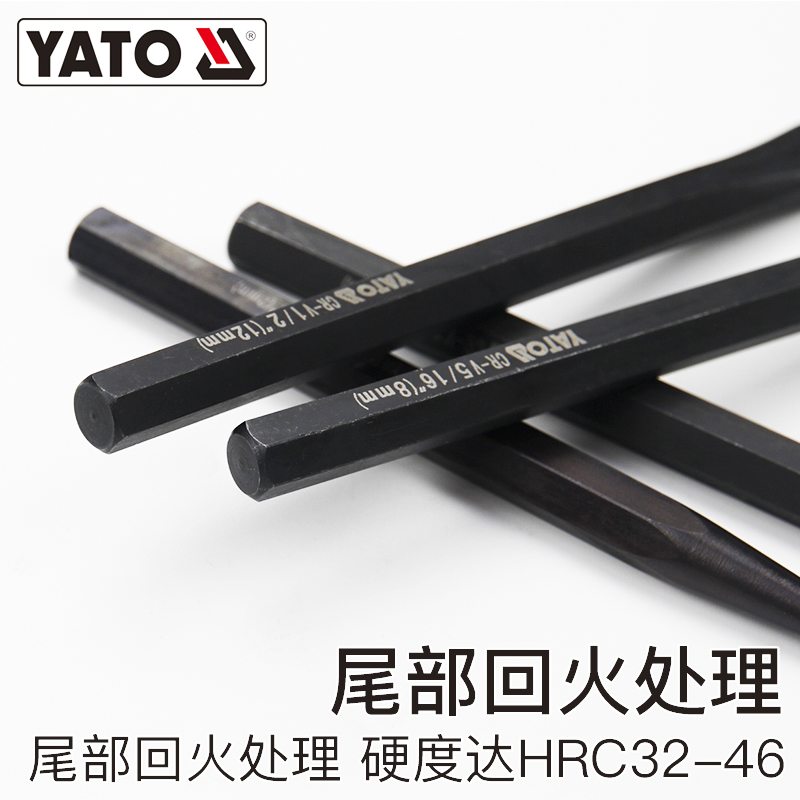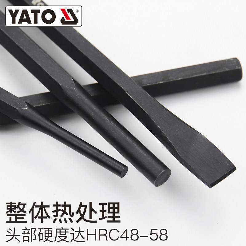 YATO销式中心样冲尖冲圆柱冲子钳工钻孔中心定位冲头合金凿打孔器