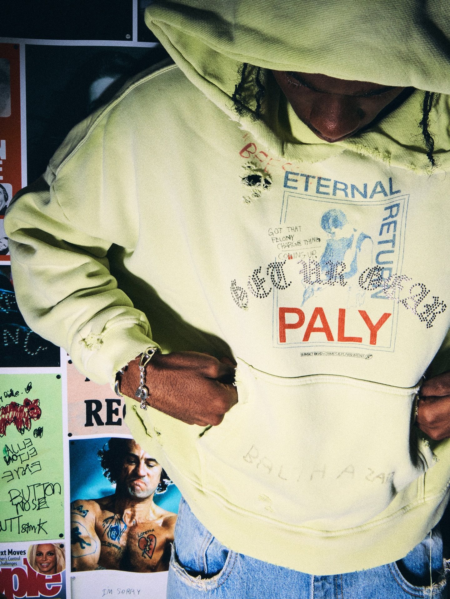 Paly Hollywood永恒轮回字母水洗做旧破坏连帽衫卫衣边伯贤同款