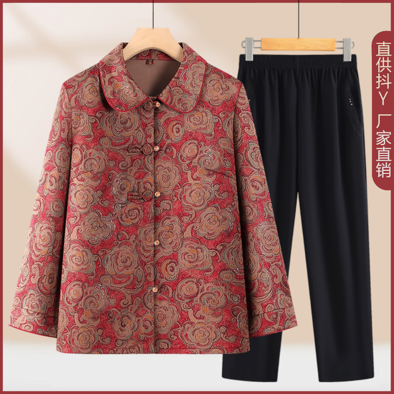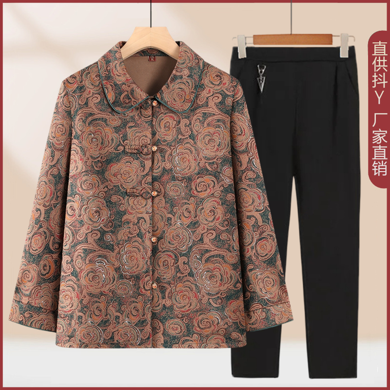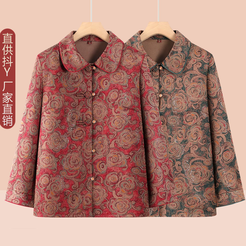 奶奶春秋装长袖衬衫中老年人70岁衬衣夏装洋气外婆老太太宽松衣服