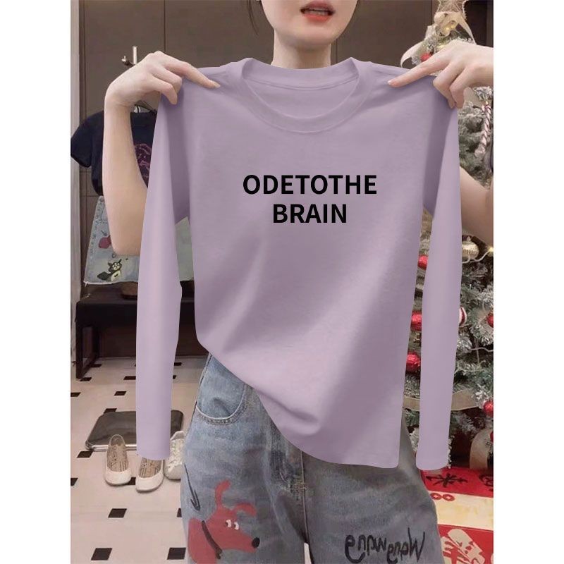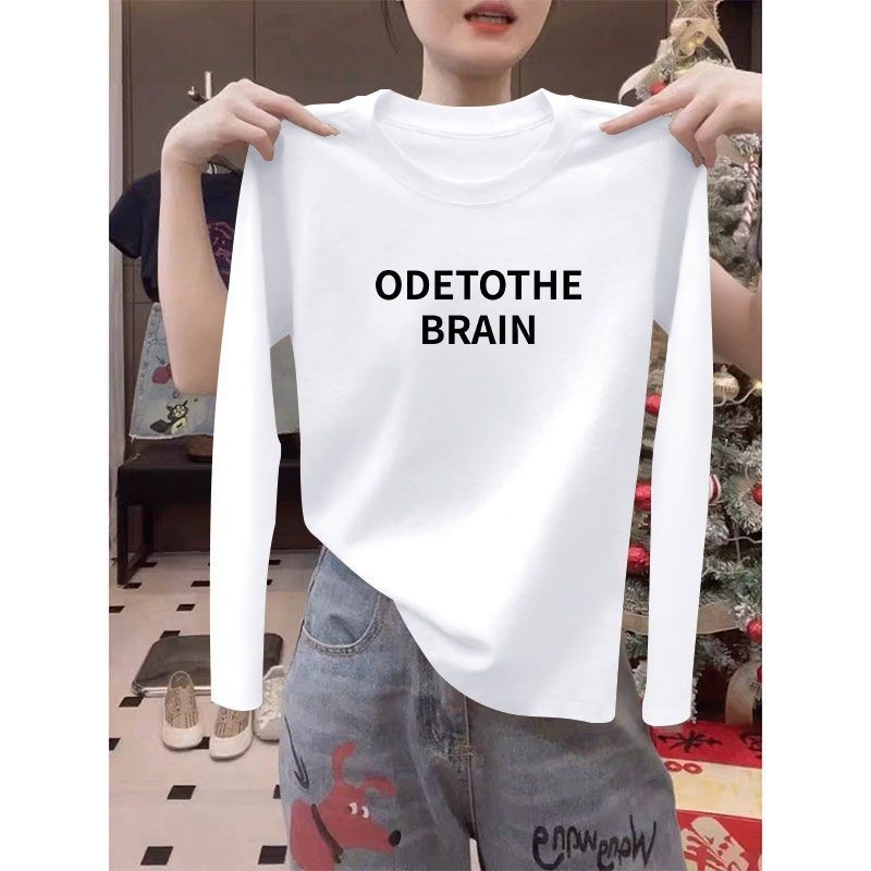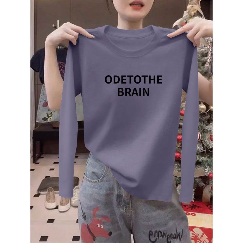 100%纯棉长袖T恤女春秋新款时尚韩版百搭通勤宽松显瘦圆领上衣服