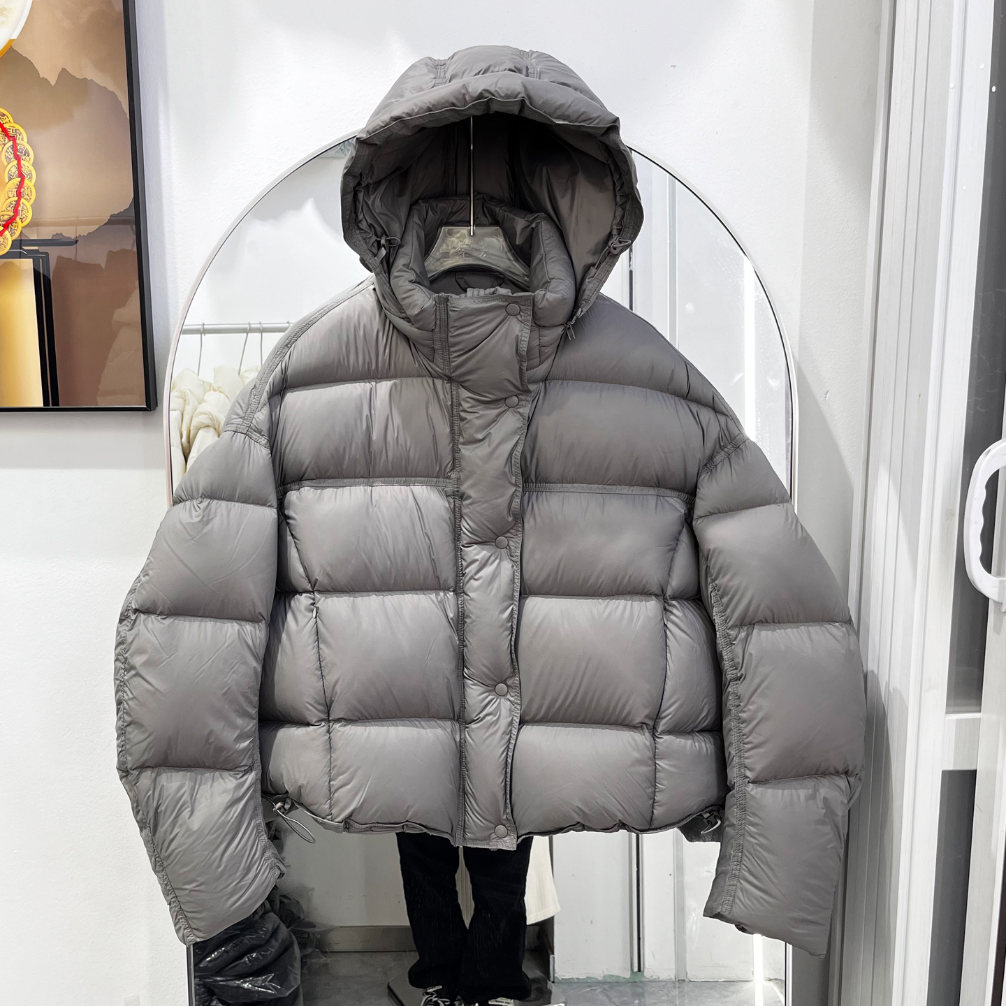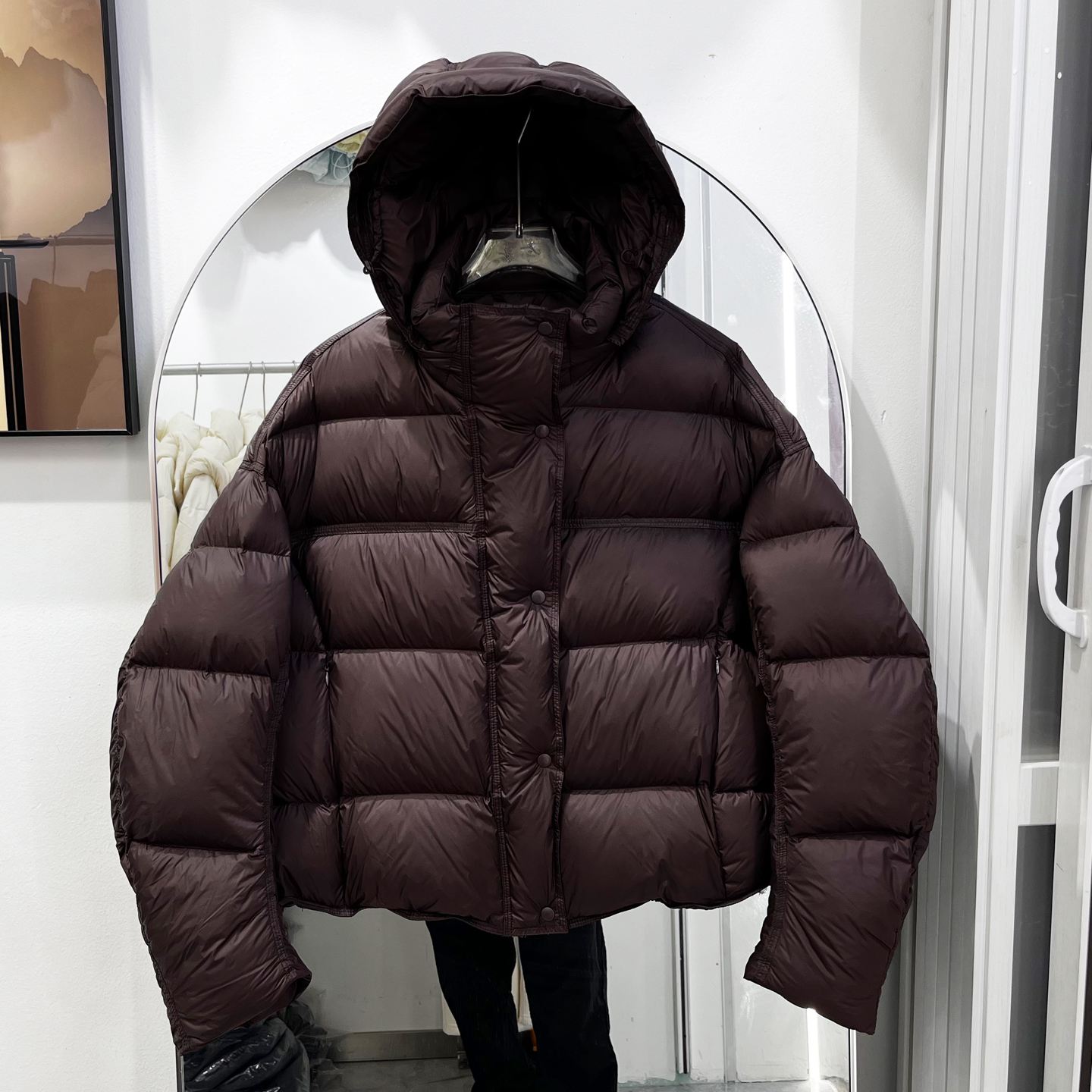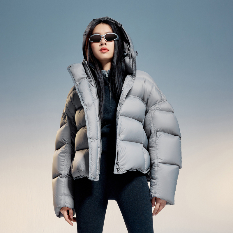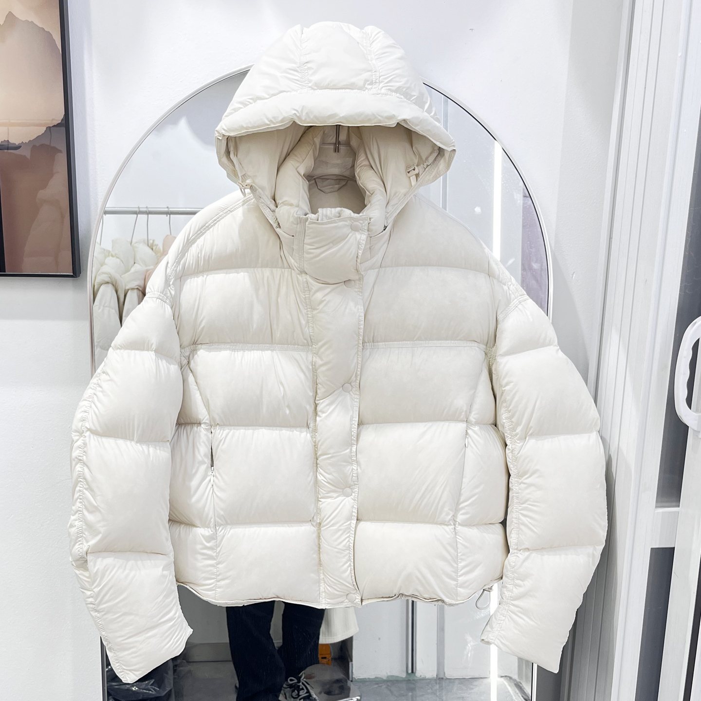 波家同款新国标90白鸭绒女冬加厚弯刀袖连帽短款小个子泡芙羽绒服