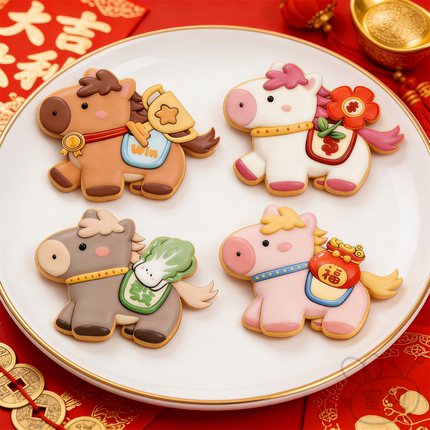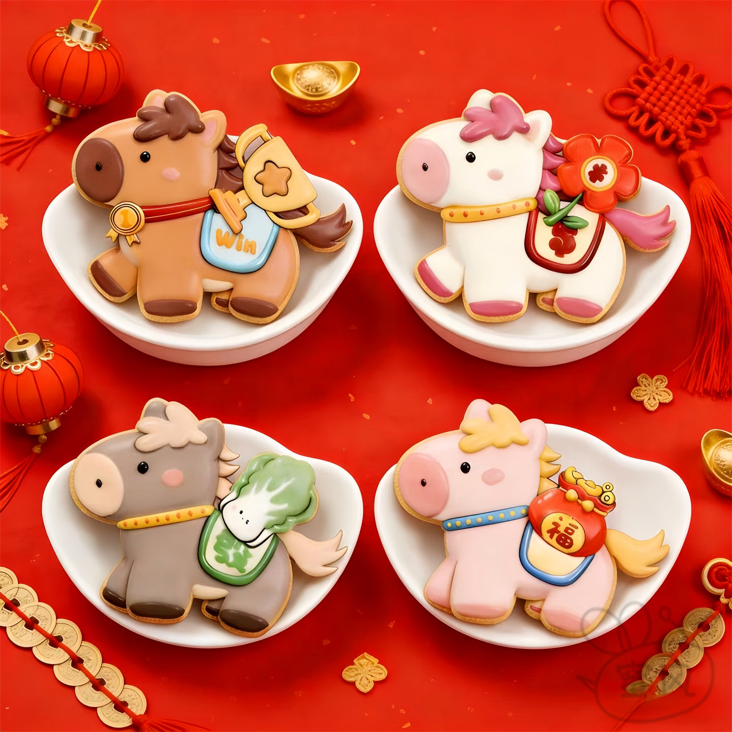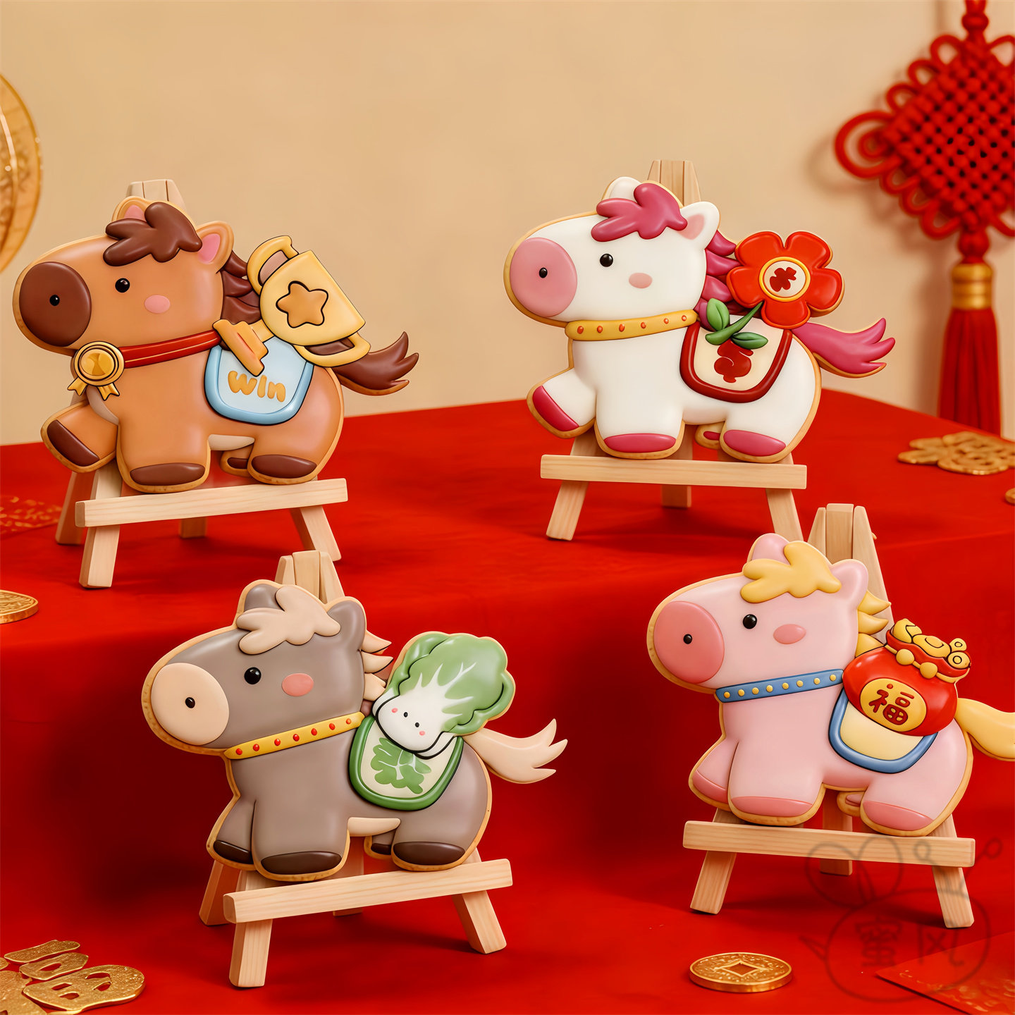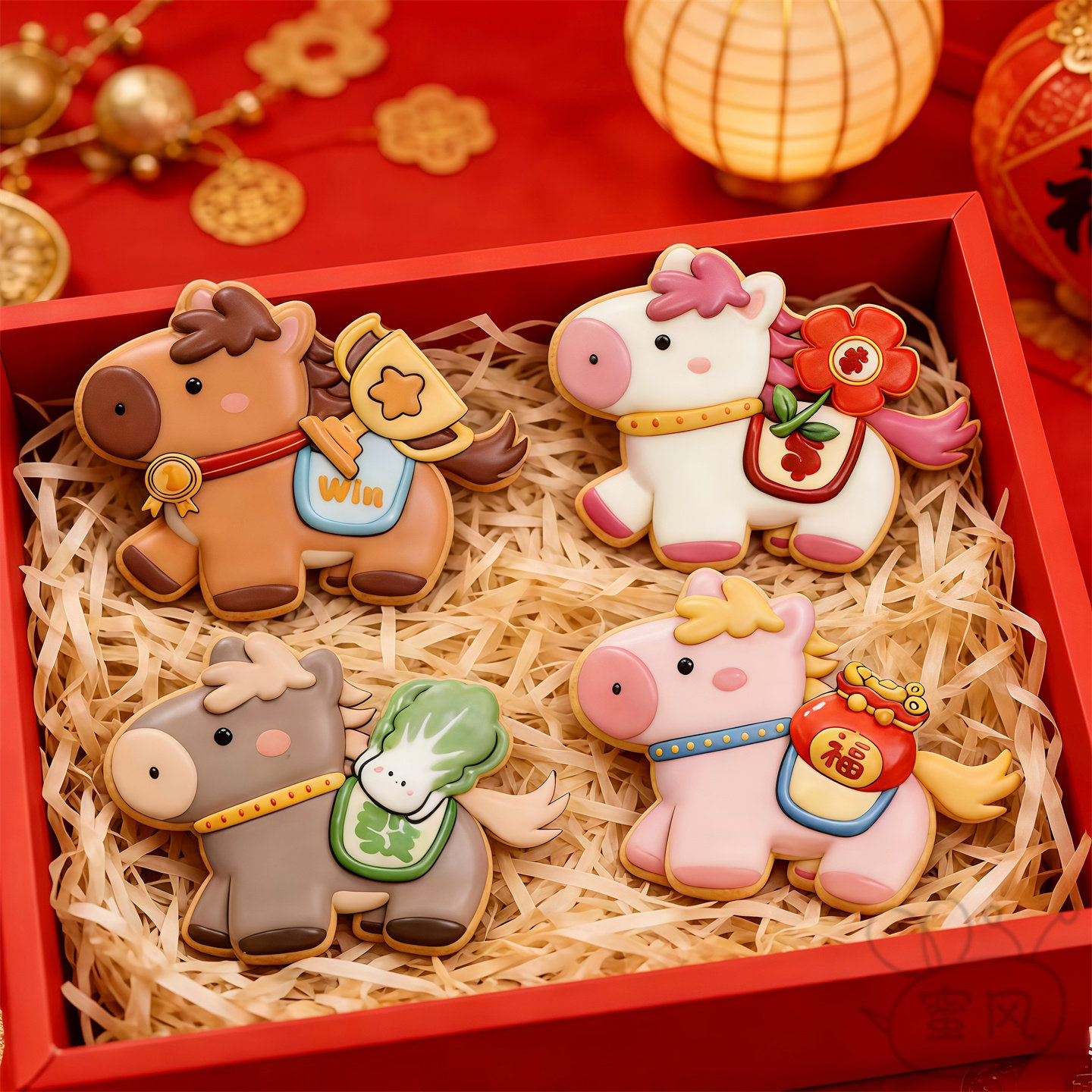 新年卡通马年翻糖曲奇饼干模具有钱花马上发财马上有福DIY印模