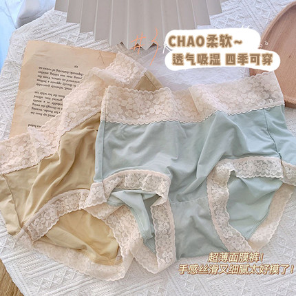 高腰收腹女生蕾丝无痕包臀纯棉抗菌中腰女士性感大码冰丝内裤女