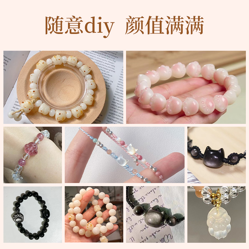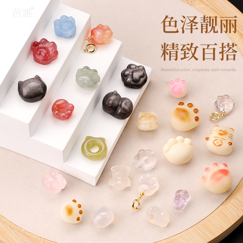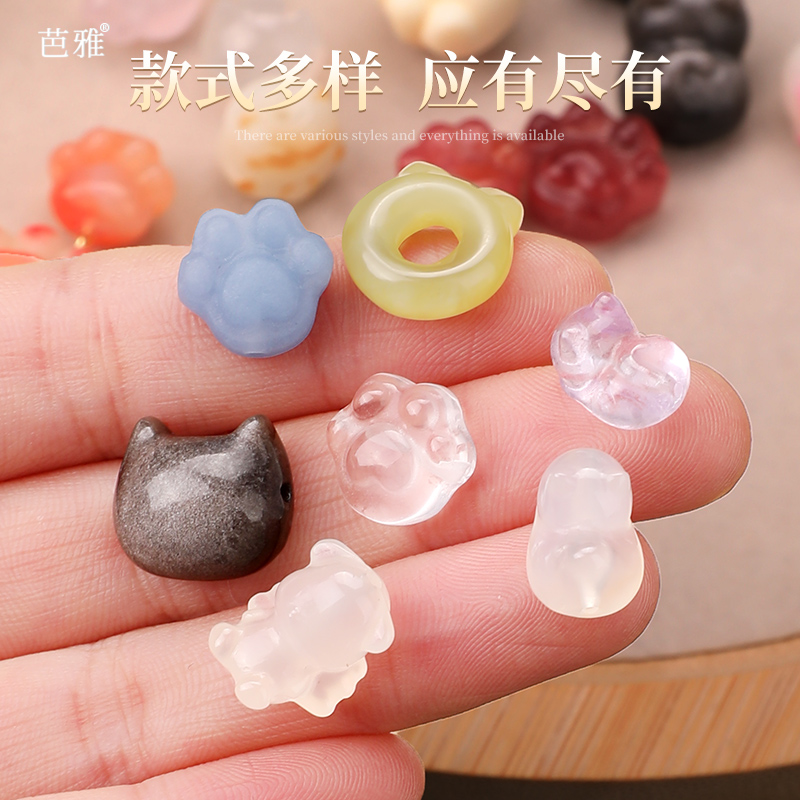 天然水晶玛瑙猫爪玉石吊坠草莓晶挂件菩提diy手串手链银曜石配件