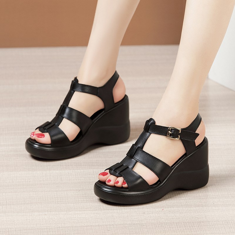 坡跟凉鞋女夏季2025新款高跟松糕底厚底防水台时尚百搭大小码凉鞋