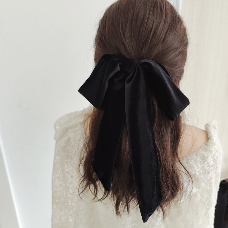 原创黑色丝绒超大蝴蝶结发饰女时尚黑色发夹弹簧夹马尾夹新款头饰