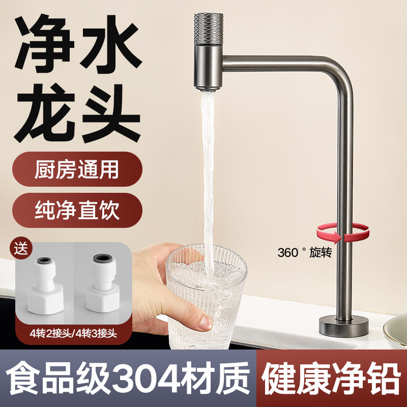 枪灰色净水器水龙头304不锈钢2分3分接口水龙头单冷厨房水槽直饮