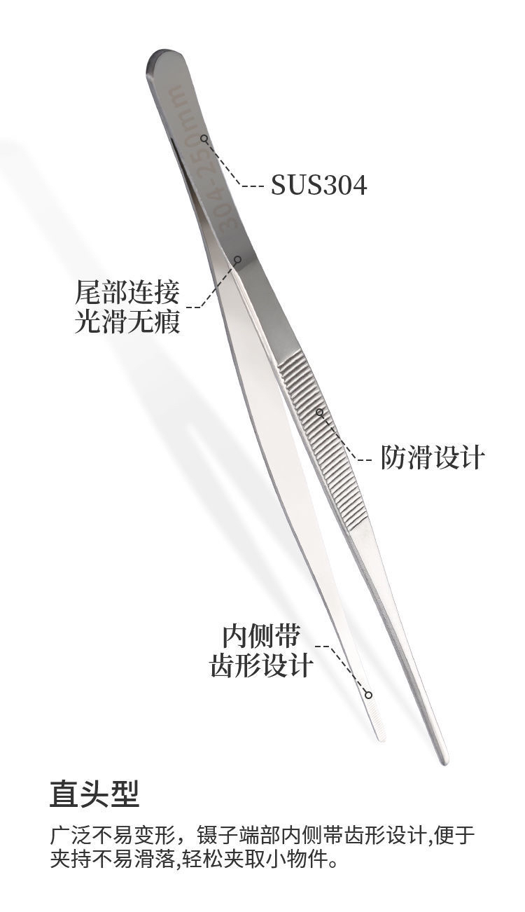 不锈钢镊子圆头带齿敷料夹子加厚加硬直头弯头尖头带钩组织夹包邮