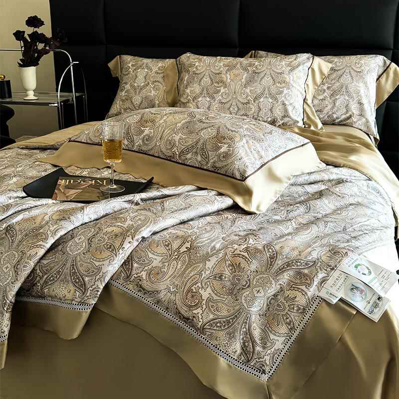 田园印花100支天丝夏被四件套凉感夏凉被空调被薄被子可机洗被芯