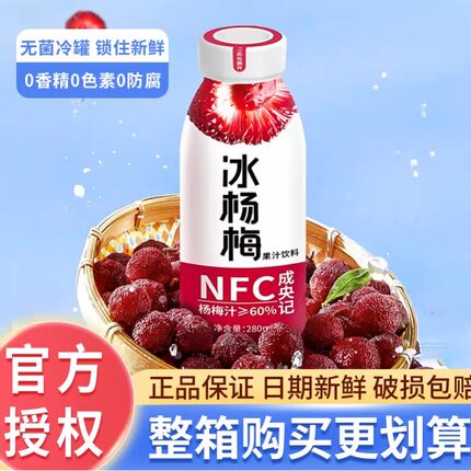 成央记冰杨梅NFC果汁饮料冰镇杨梅汁0脂果蔬汁饮料280ml*12瓶整箱
