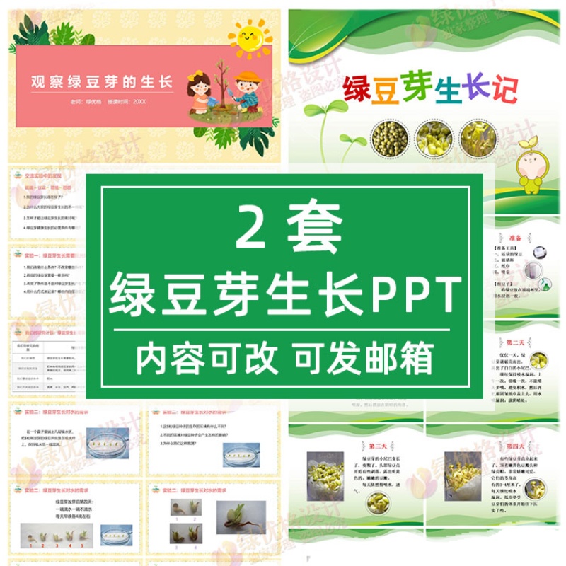 绿豆芽生长PPT 小学生科学观察记录绿豆芽成长阶段变化日记模板
