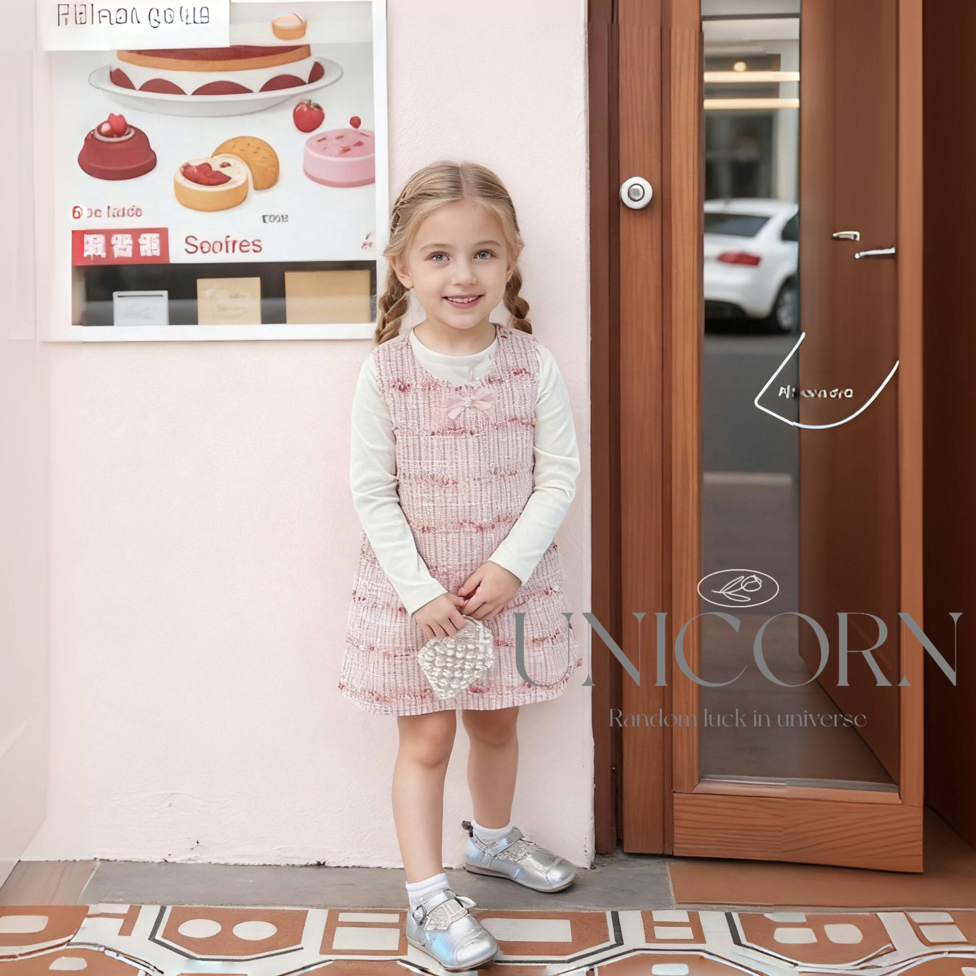 UNICORN女童春秋季新款韩版粉色小香风背心裙女宝高级气质公主裙