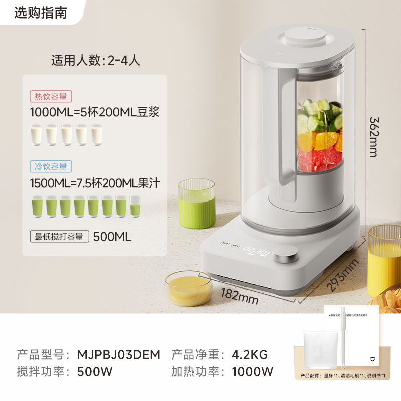 小米官旗米家智能破壁机1.5L变频无刷低音杂粮辅食机豆浆料理机P1