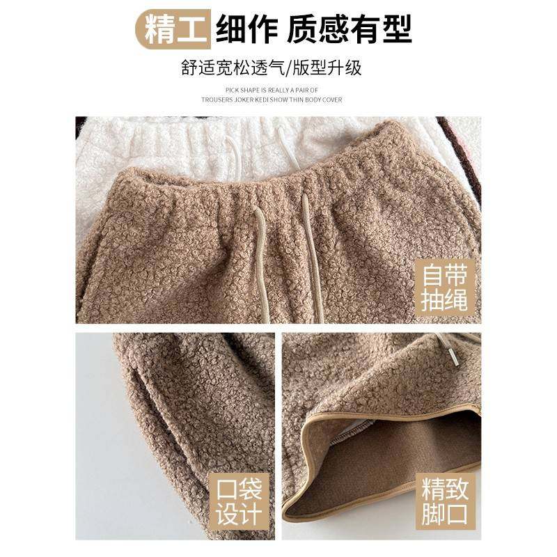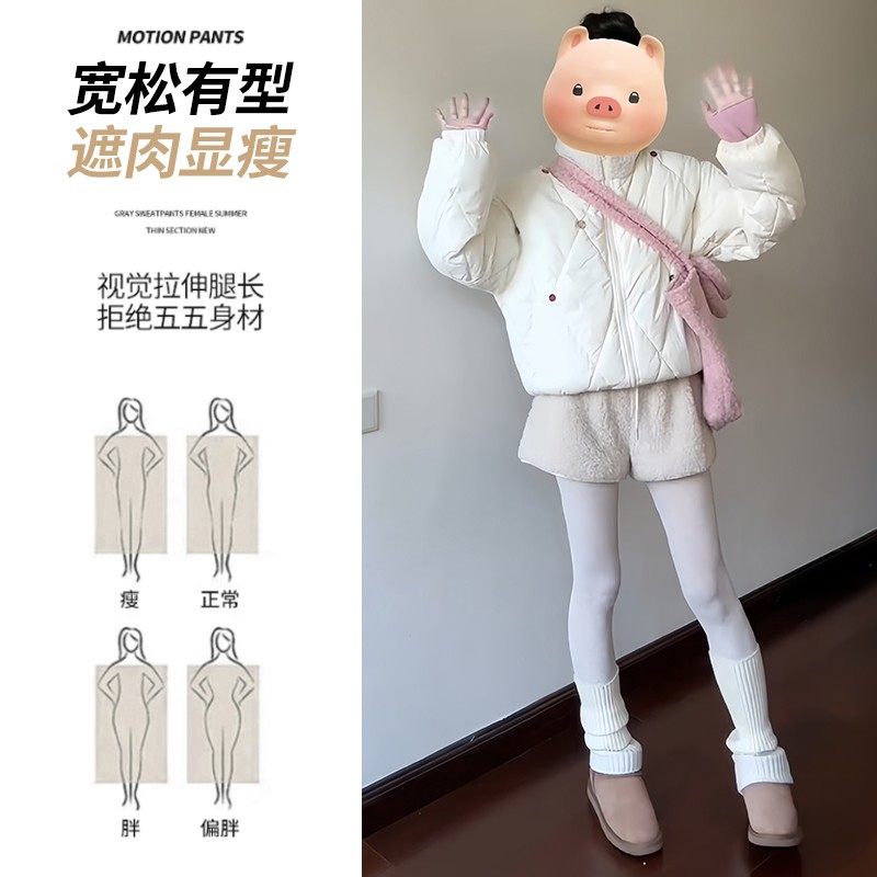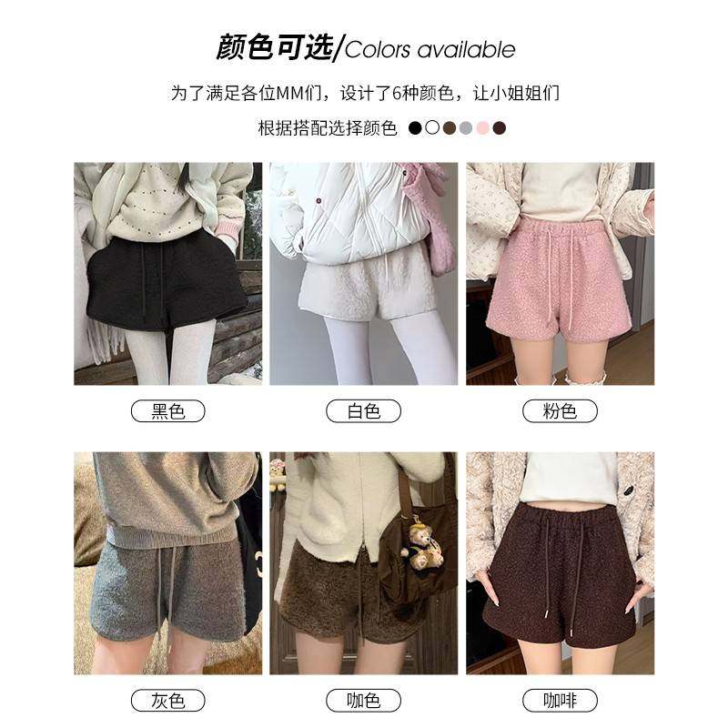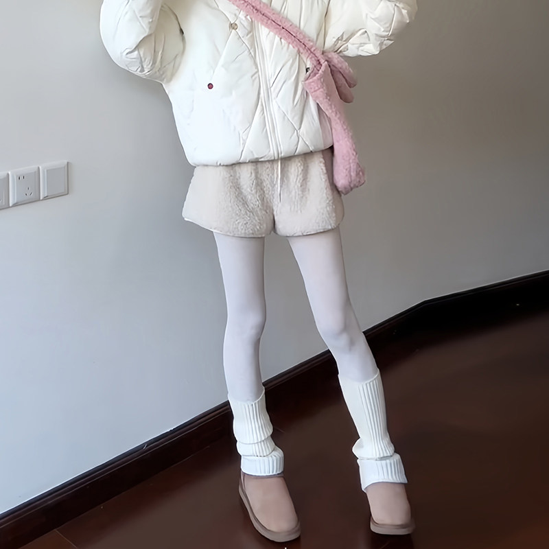 白色羊羔毛短裤女秋冬季外穿2025新款小个子加绒加厚高腰打底靴裤