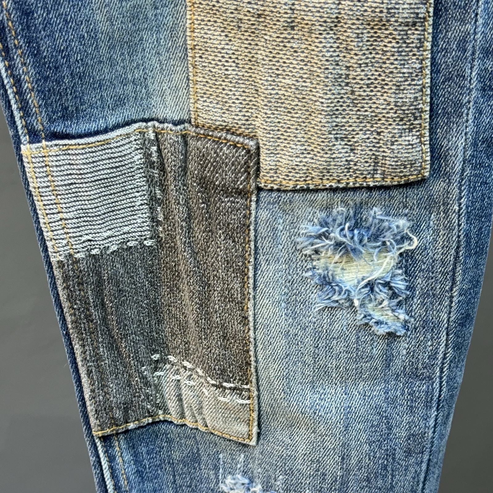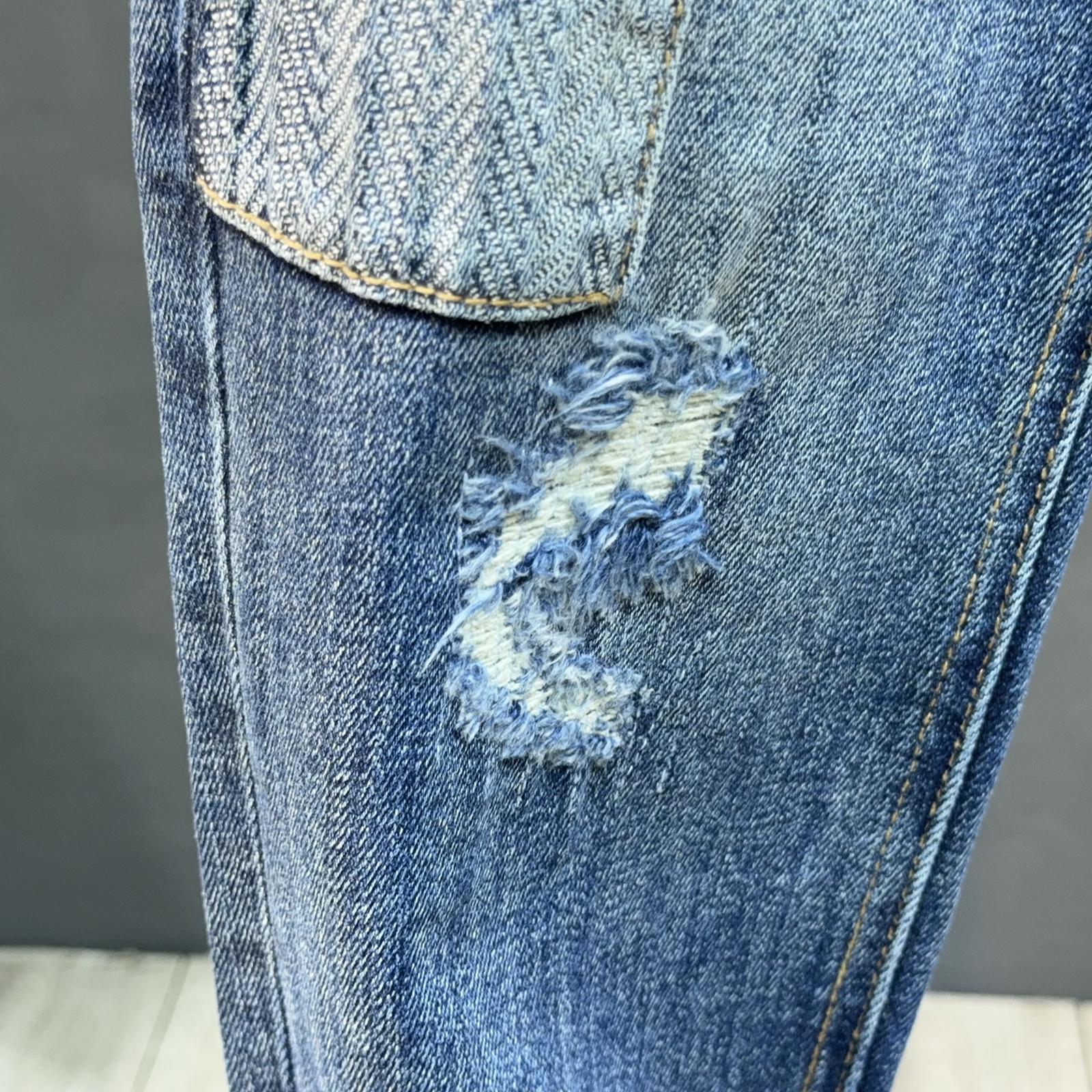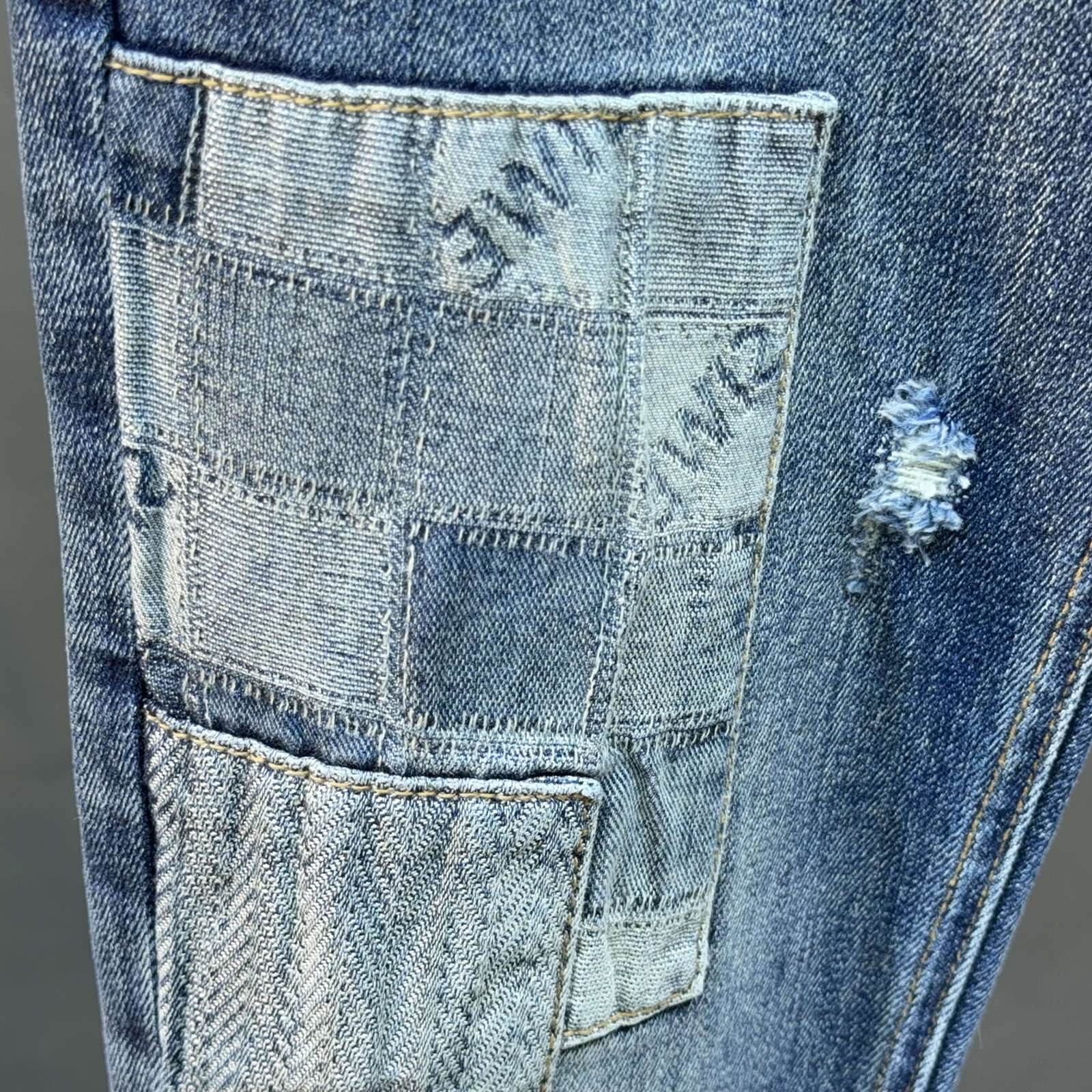 欧货秋季美式水洗牛仔裤男潮牌破洞补丁刺绣贴布修身弹力小脚长裤