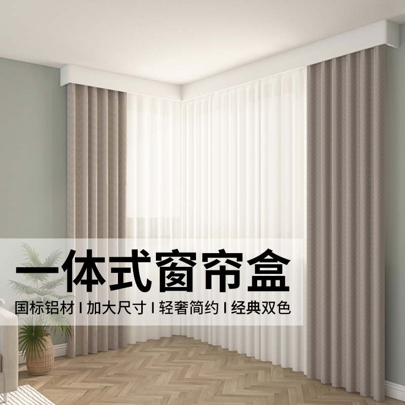 铝合金窗帘盒挡板一体飘窗新款成品装饰遮挡窗帘轨道顶装后期加装