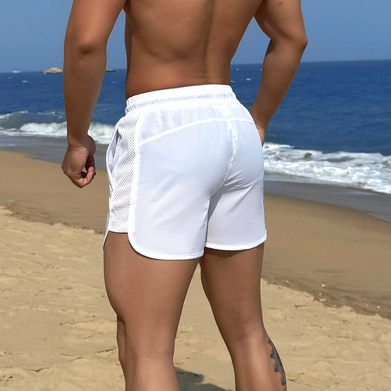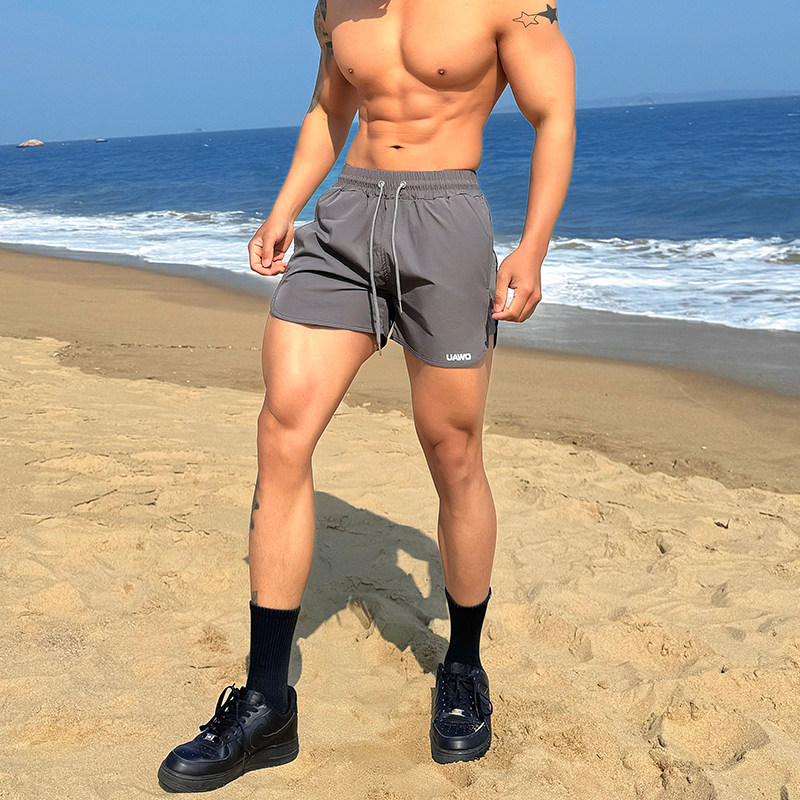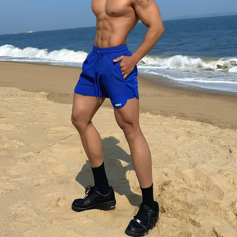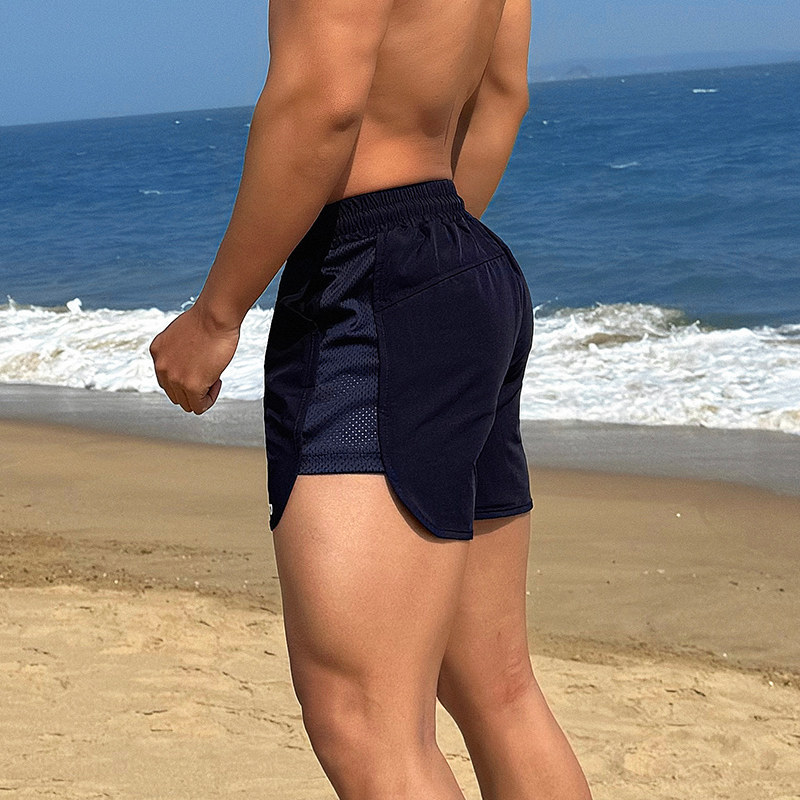 uawo夏季男士侧边网眼三分裤拼接薄款柔软弹力健身休闲运动短裤