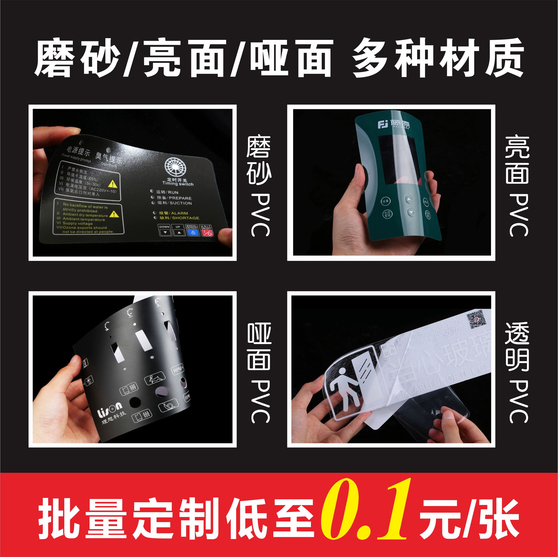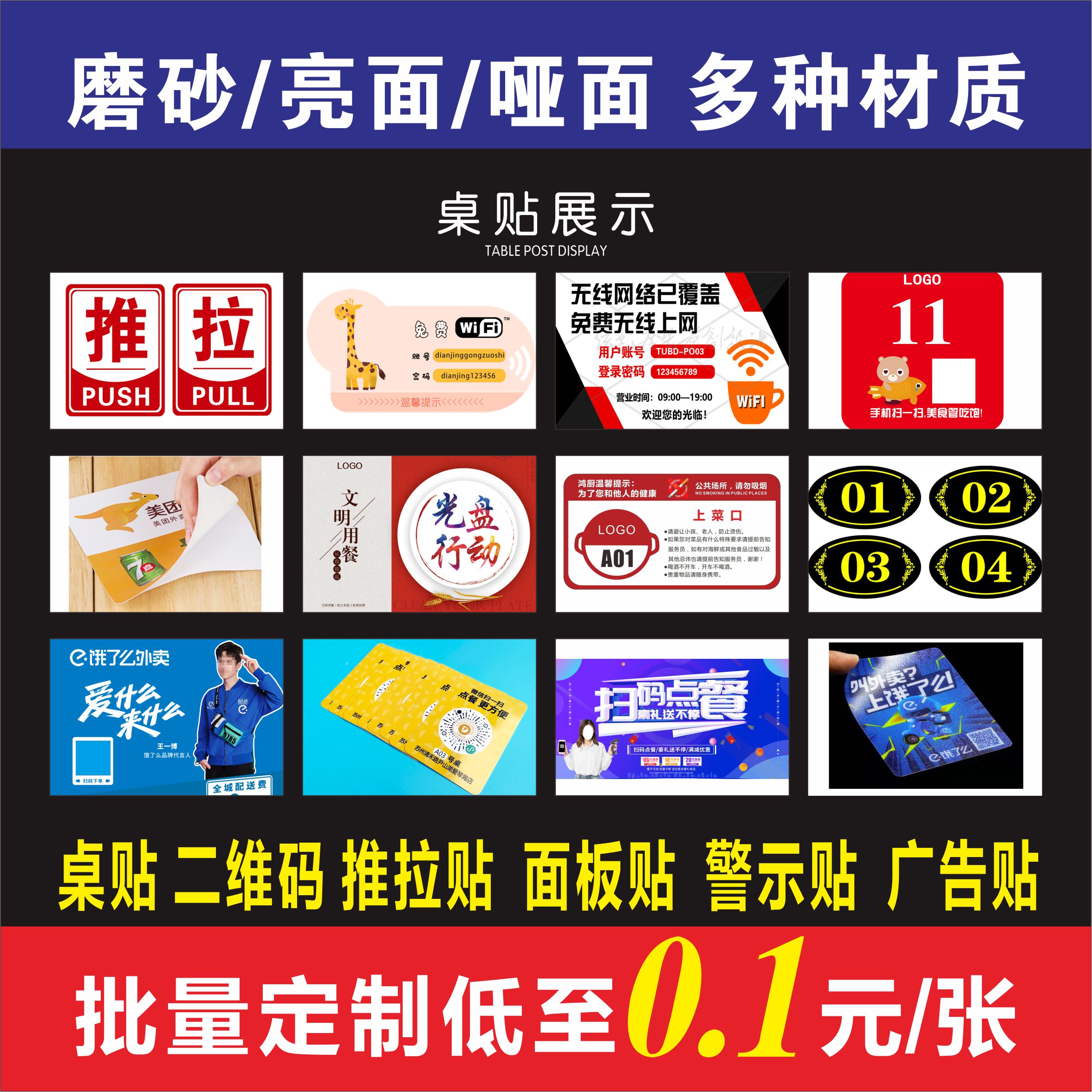 磨砂pvc塑片不干胶logo广告定制二维码贴机器面板贴桌贴警示贴