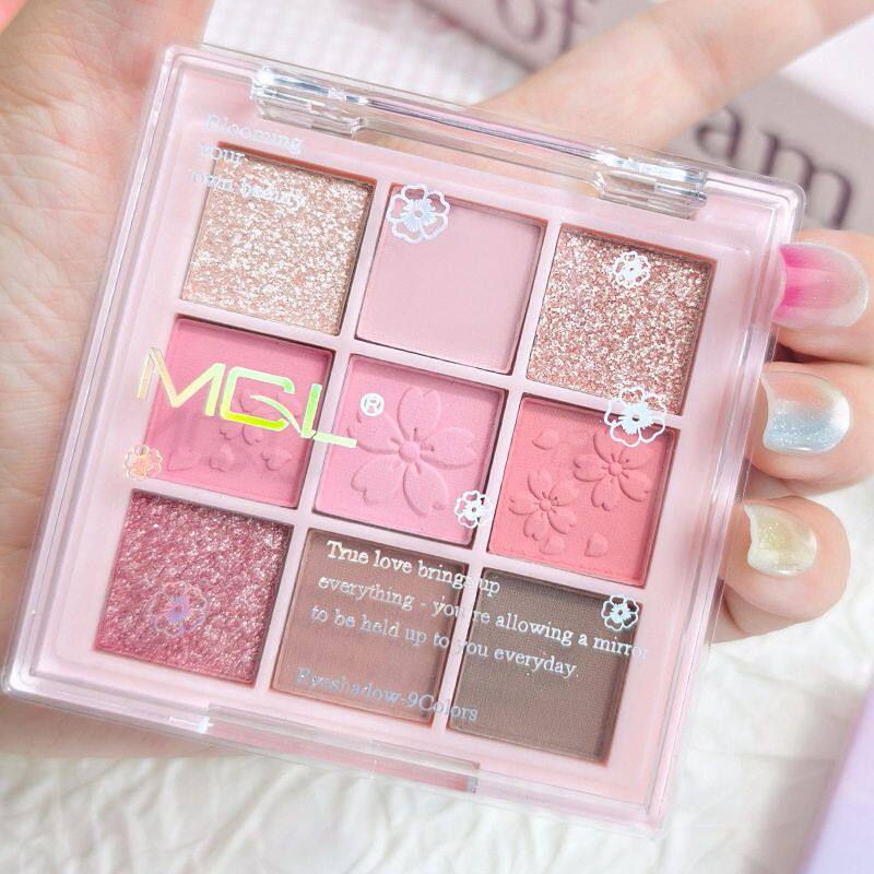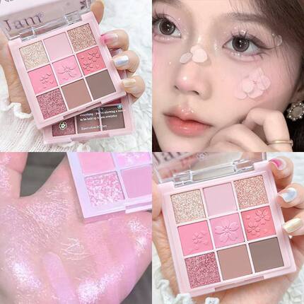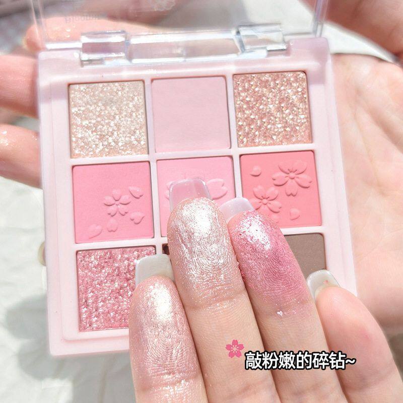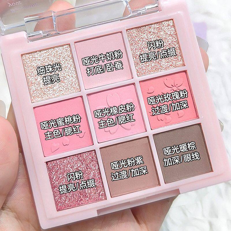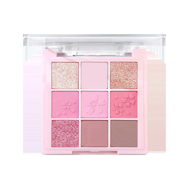 桃花眼妆暴击~樱花粉限定九色眼影盘哑光珠光百搭粉色眼影腮红盘
