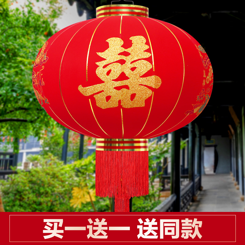 结婚大红喜字大门防水户外阳台植绒灯笼室外婚庆布置喜庆装饰宫灯