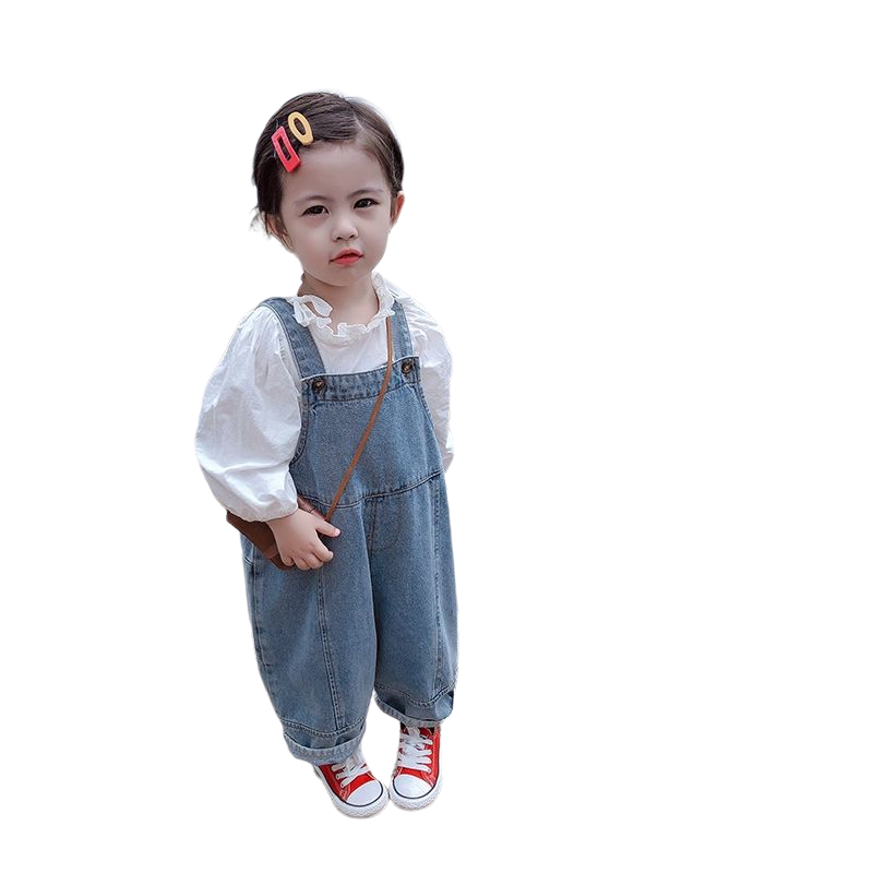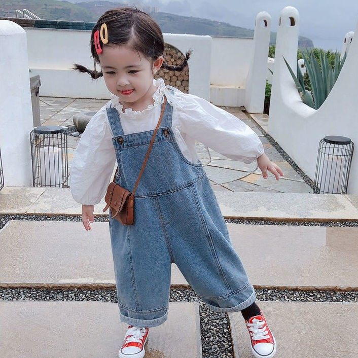 宝宝直筒牛仔背带裤春季薄款儿童中小童宽松女童男女宝裤子外穿潮