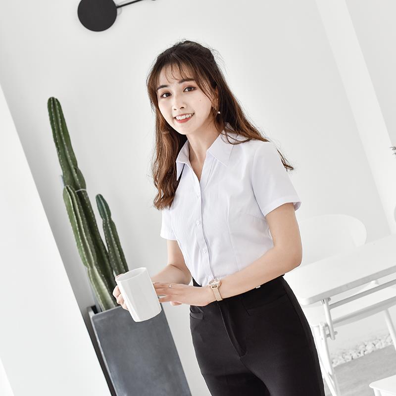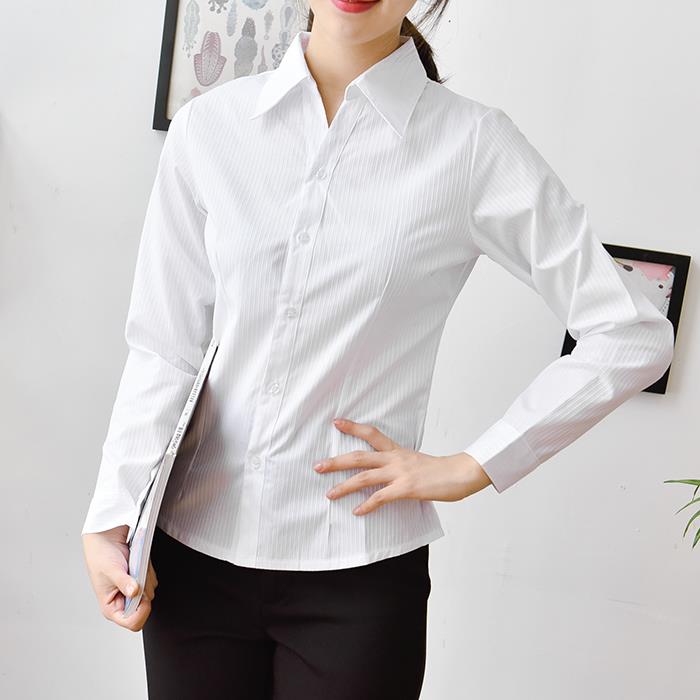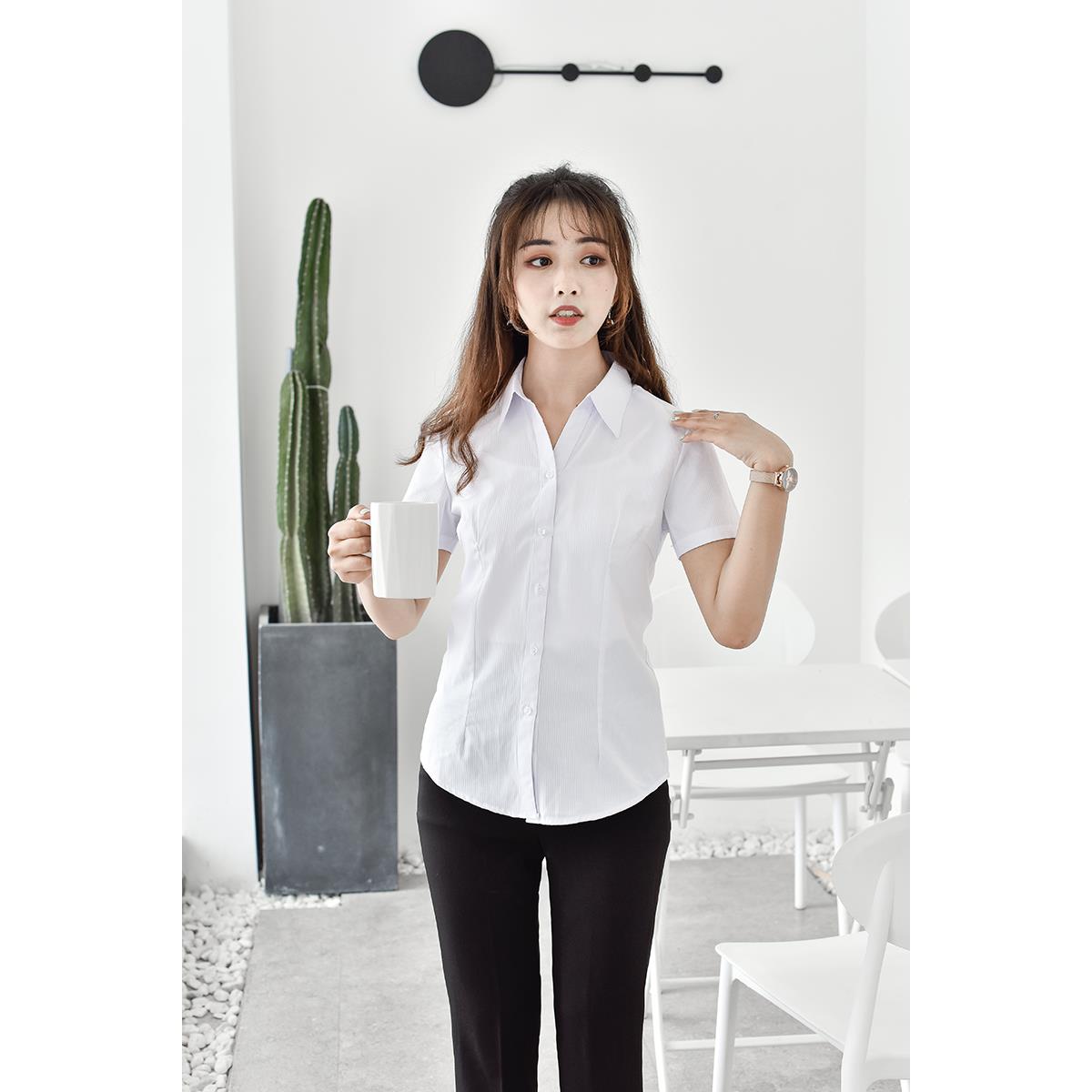 2025新款韩版包邮白衬衫女修身收腰V领细竖条纹衬衫短袖职业OL长
