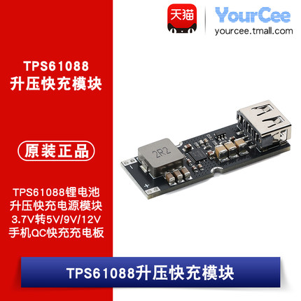 TPS61088锂电池升压快充电源模块3.7V转5V/9V/12V手机QC充电板