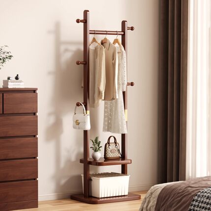 三梦实木衣帽架中古挂衣架落地卧室衣服架子主卧复古风可移动衣架