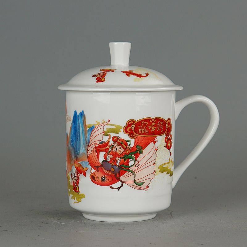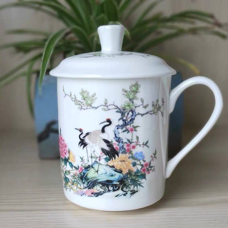 景德镇陶瓷器茶杯带盖骨瓷水杯青花瓷器会议礼品办公杯可定制花色