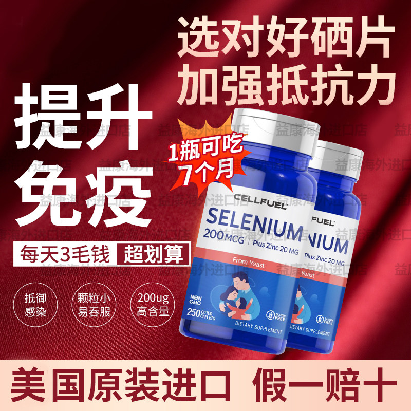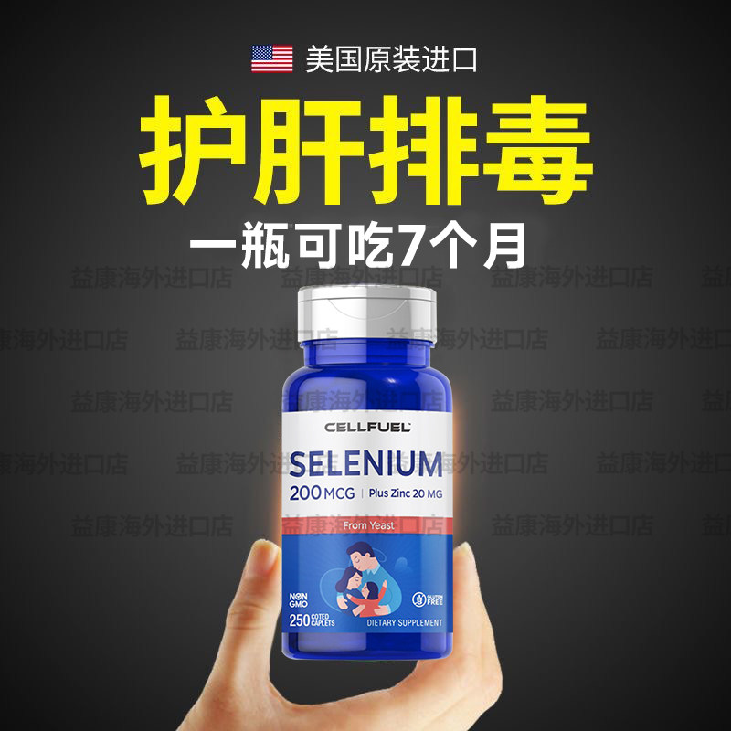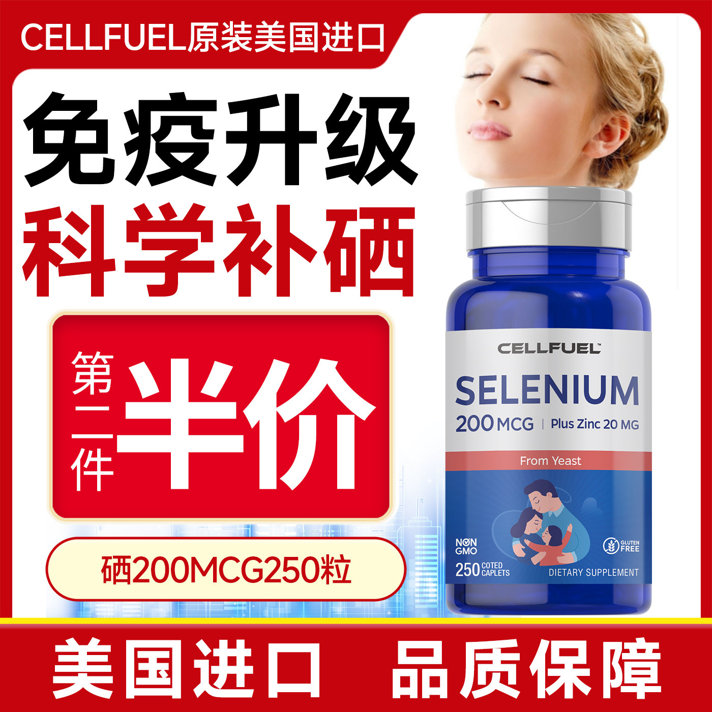 250粒美国CELLFUEL维生素硒天然有机酵母硒麦芽硒添加锌补硒HPV