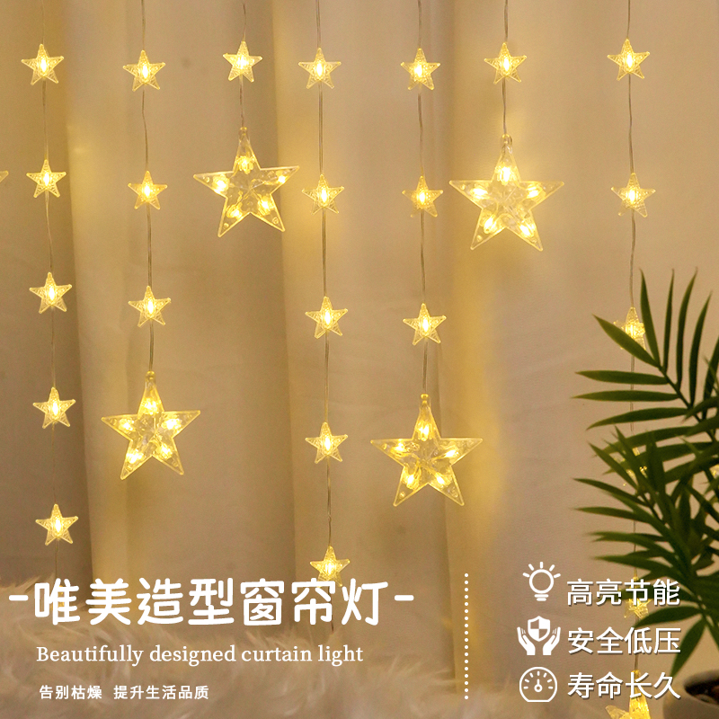 星星月亮串灯新年装饰品2025春节灯饰氛围灯过年窗户氛围场景布置