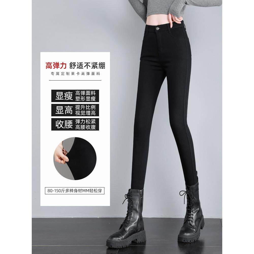 黑色打底裤女秋冬外穿加绒加厚2025年新款高腰显瘦弹力小脚铅笔裤