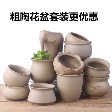 粗陶原土烧制无釉多肉植物陶瓷花盆简约创意盆栽绿植拇指套装组合