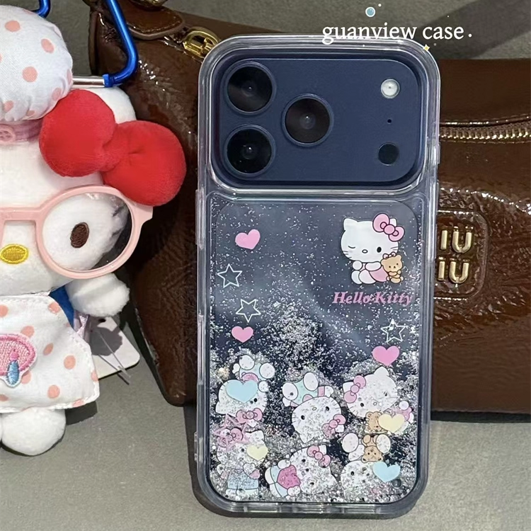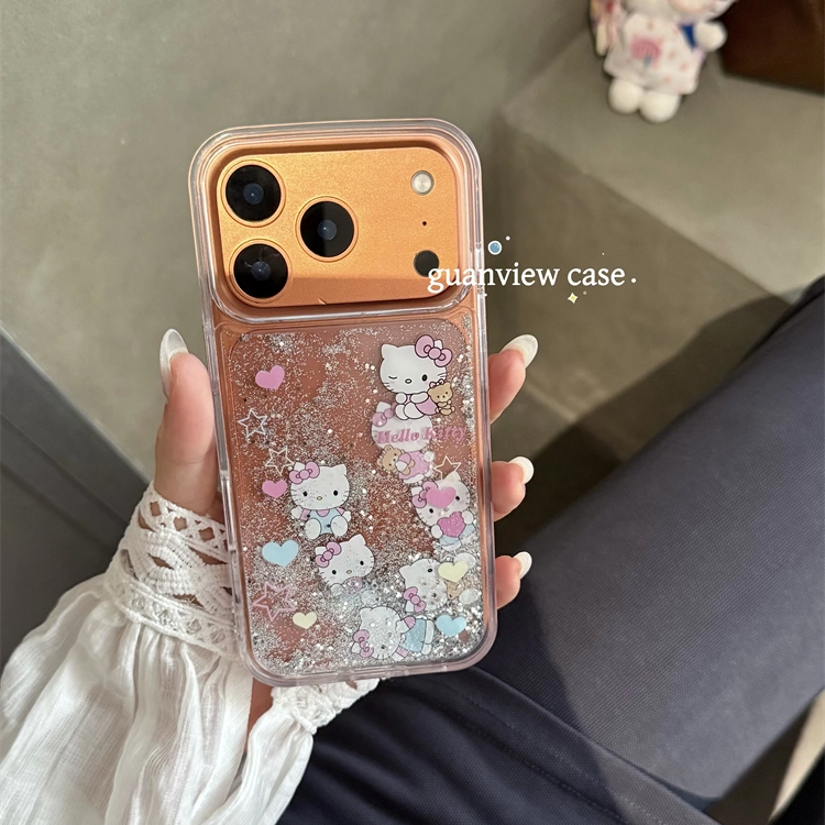 guanview 卡通可爱kitty猫流沙壳适用iphone17promax苹果16pro手机壳15透明14/13流动滑块12全包亚克力防摔套