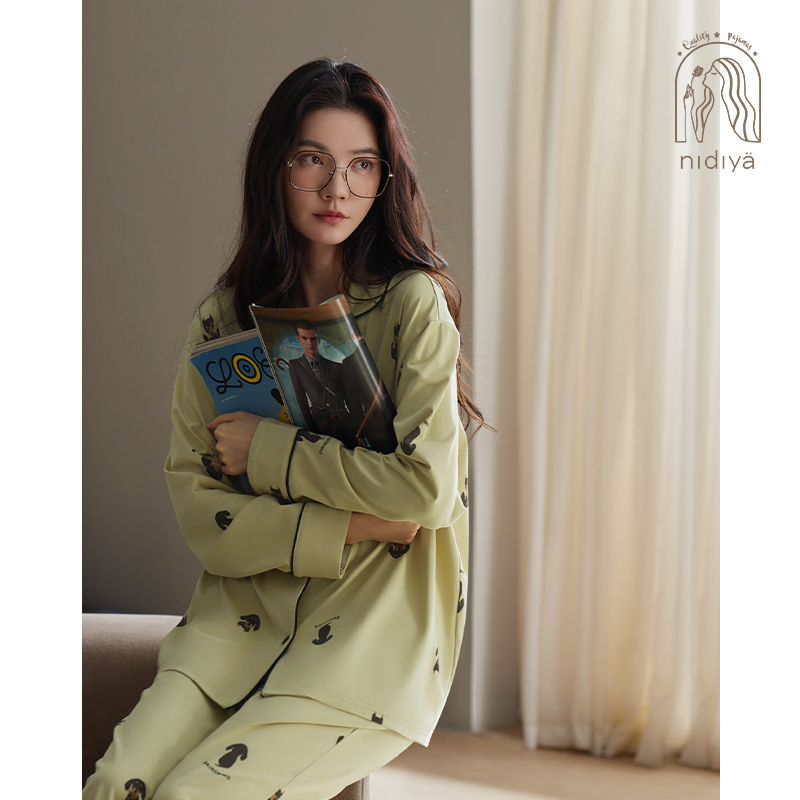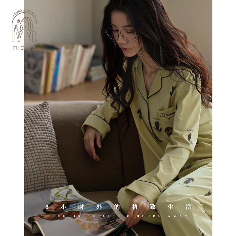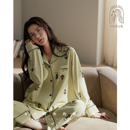 妮狄娅睡衣女秋季柔软棉长袖宽松开衫款减龄少女春秋季家居服套装