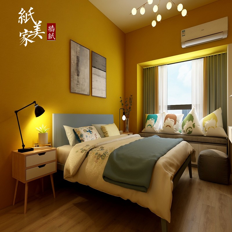 加厚防水无纺布北欧工业风墙纸客厅现代简L约纯色素色电视背景壁