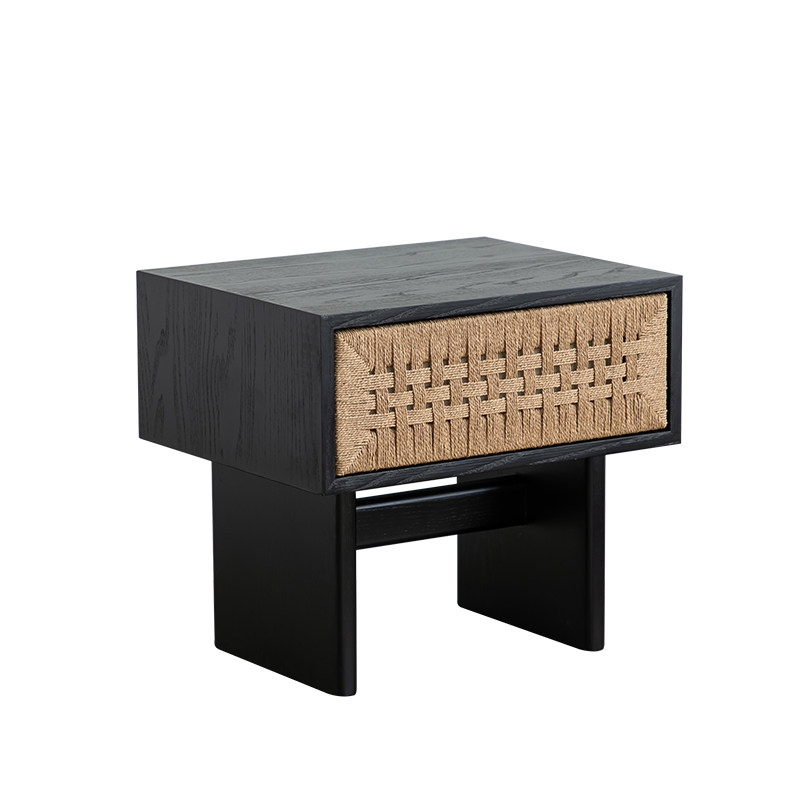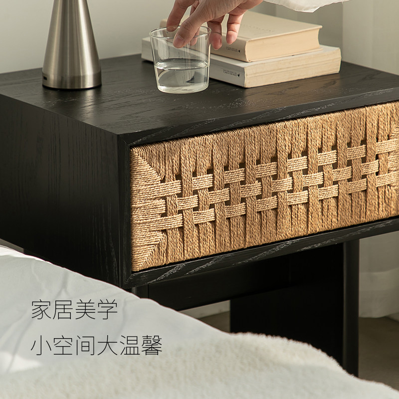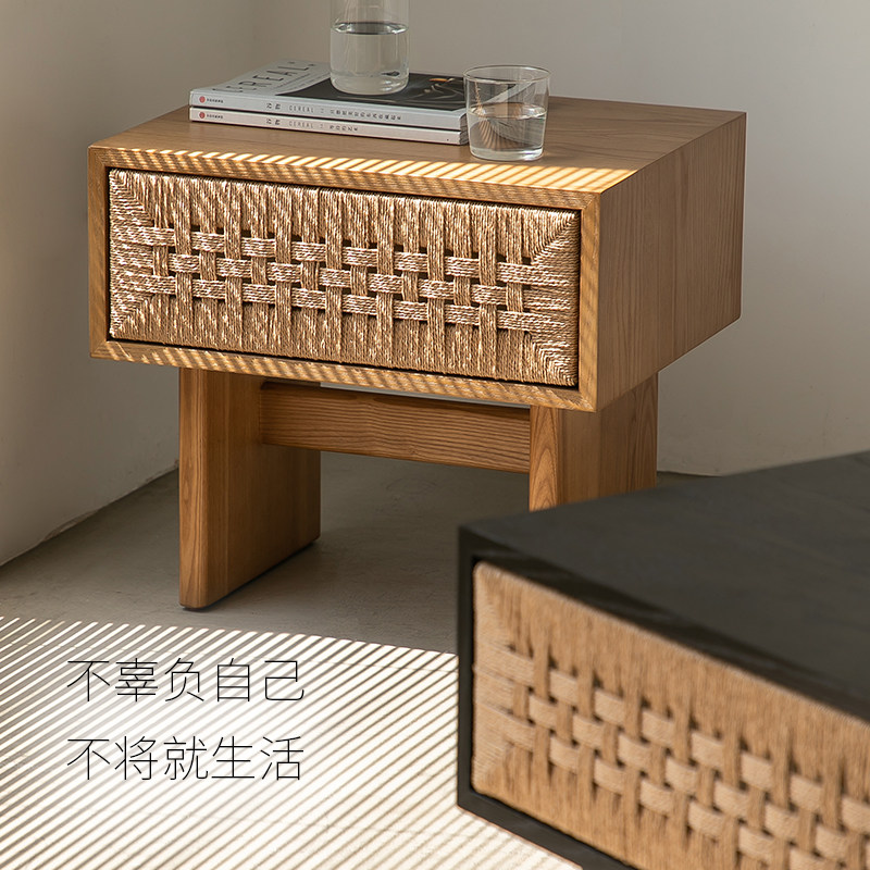 中古实木编绳织床头柜家用客厅沙发边柜北欧民宿设计师创意储物柜