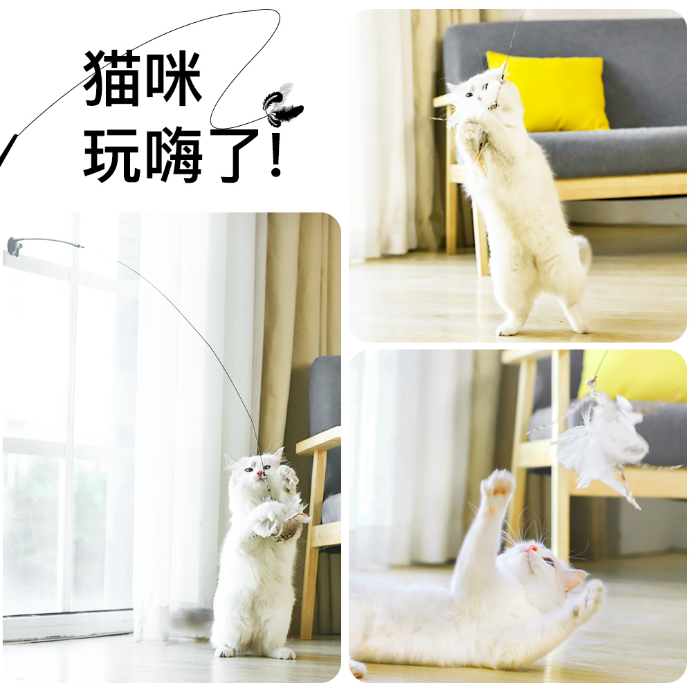 猫玩具自嗨解闷神器猫咪懒人自动逗猫棒羽毛吸盘带铃铛耐咬幼猫