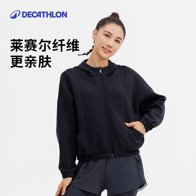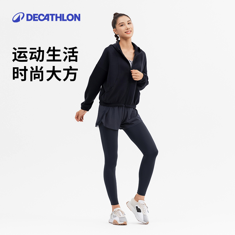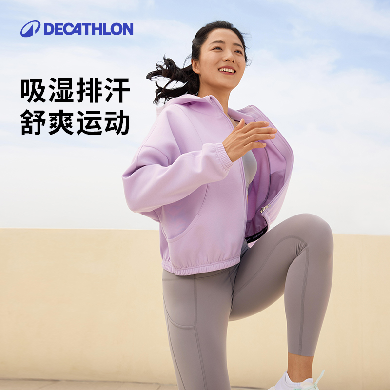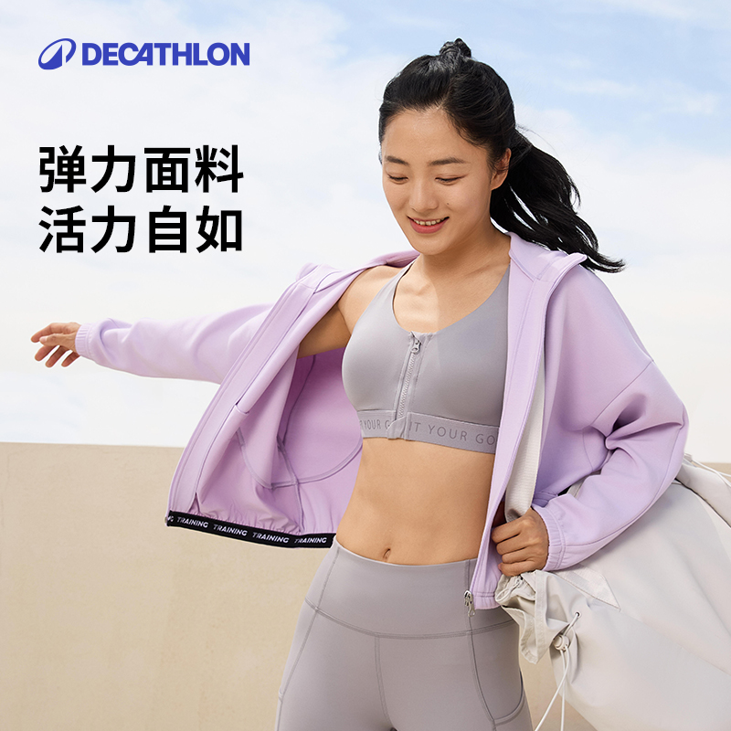 迪卡侬运动外套女秋季基础训练跑步保暖透气连帽茄克SAX1
