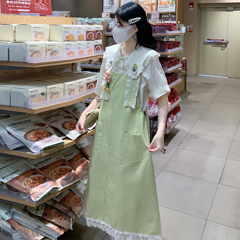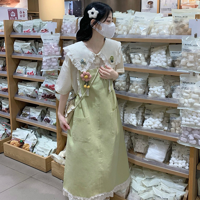 初中生短袖娃娃领衬衫少女夏季套装裙高中学生清新甜美背带连衣裙