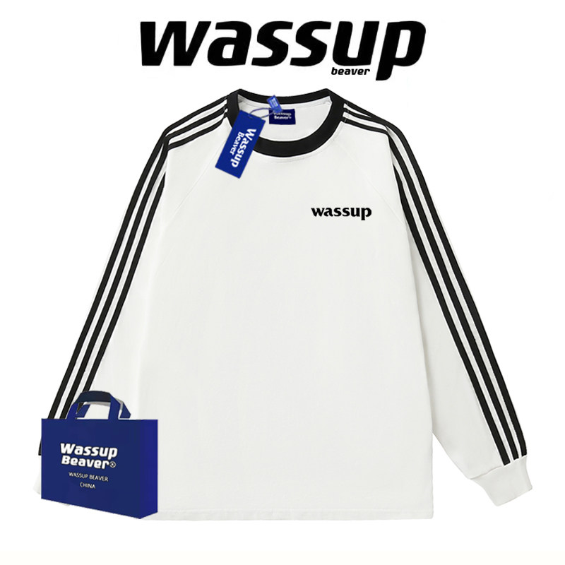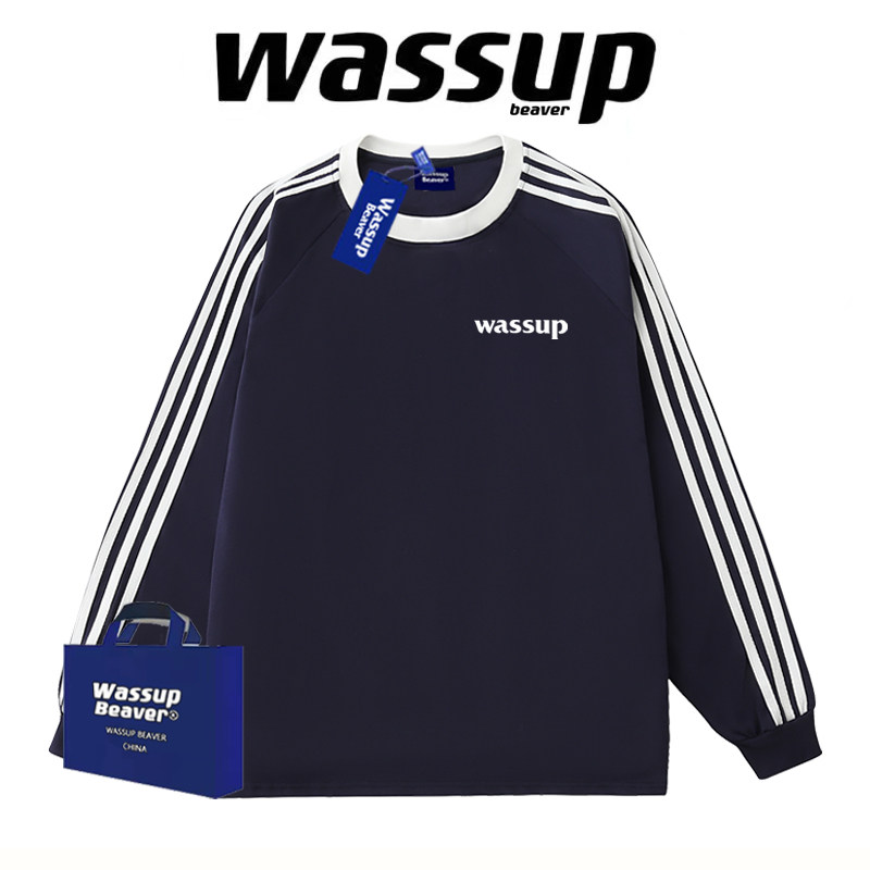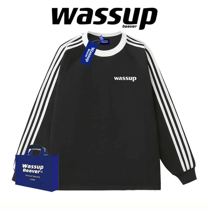 WASSUP BEAVER国潮牌三条杠美式休闲长袖T恤男女卫衣春秋宽松上衣