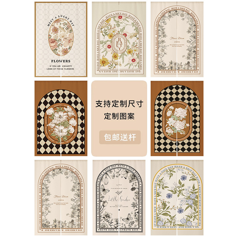 厨房门帘免打孔遮挡帘卧室隔断帘家用卫生间厕所半帘短帘挂布帘子
